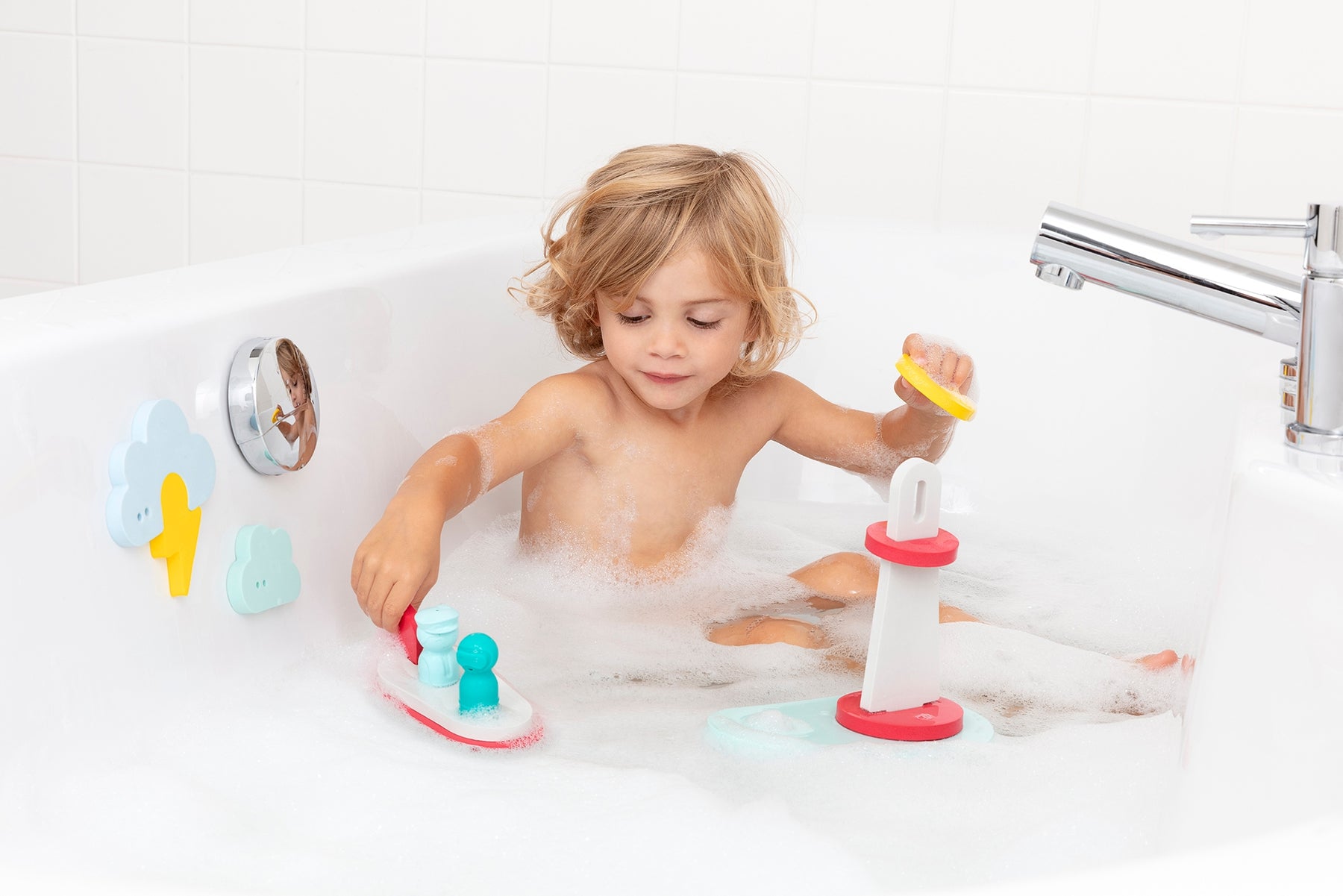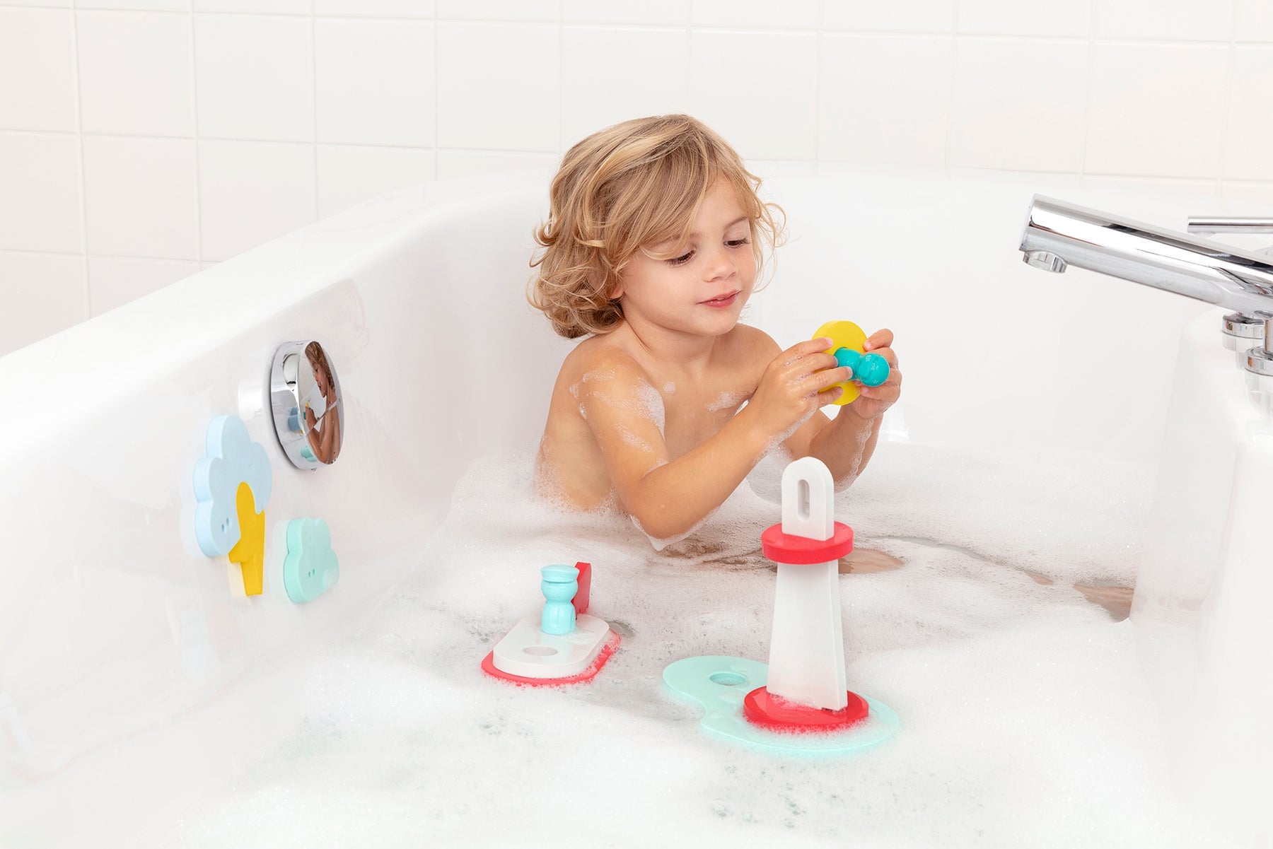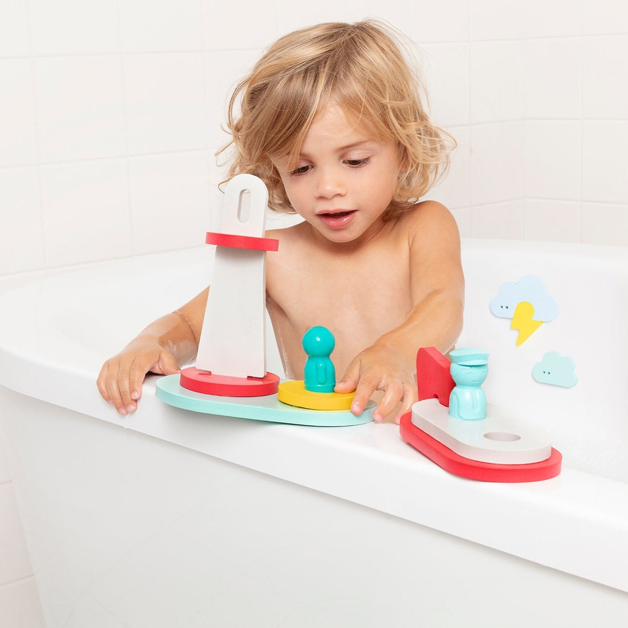 Quut's Bath Puzzle Friends - To The Rescue bath toys timulate your kids’ imagination, boost their vocabulary & sound making abilities, and help them develop their motor skills! All the shapes are made out of EVA soft foam which keeps them afloat. The set also includes 2 finger puppets.