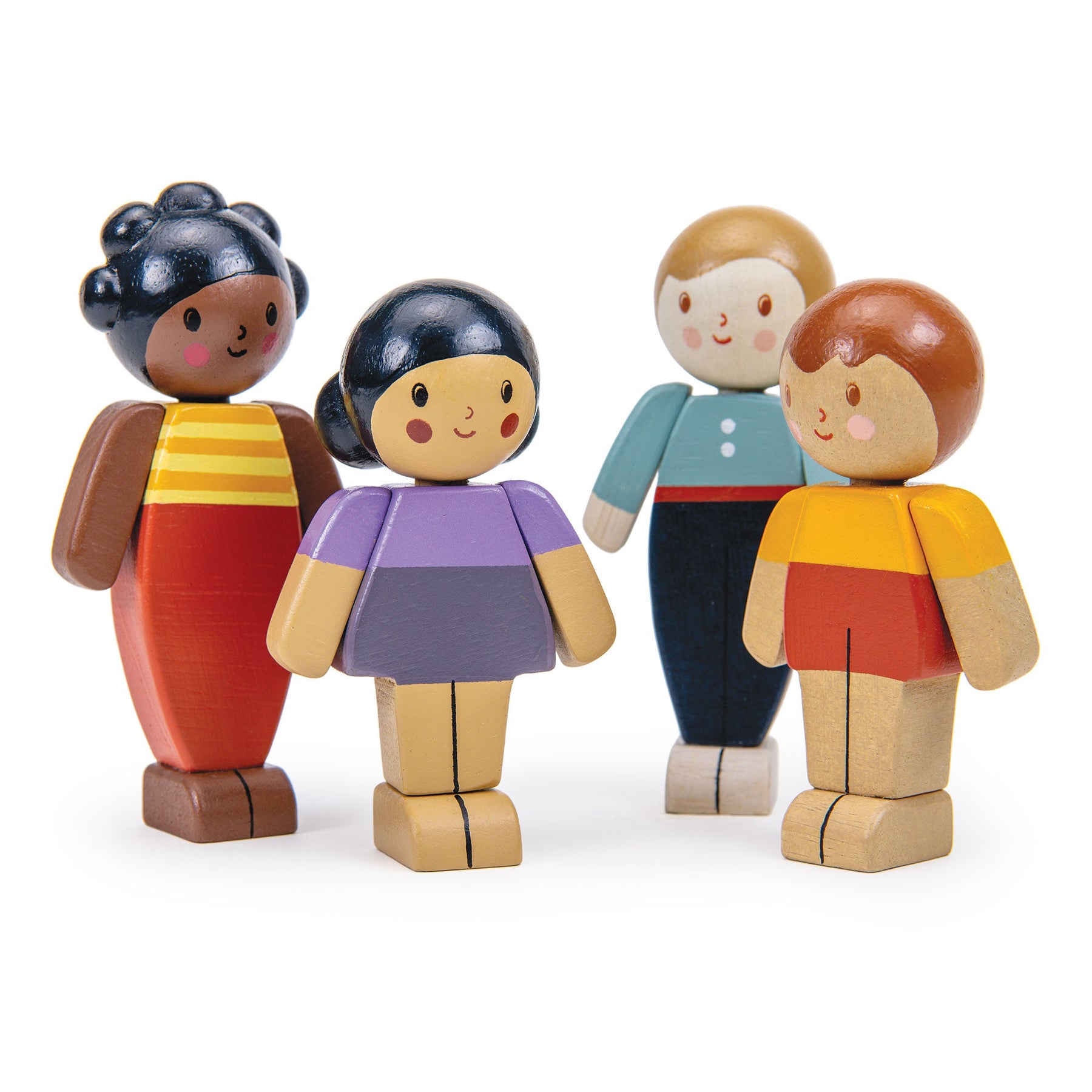 Made from beautiful, sustainably sourced rubberwood, these dolls have articulated arms, and pretty painted faces. Different skin tones and brightly coloured outfits to choose which characters best resemble your family.
