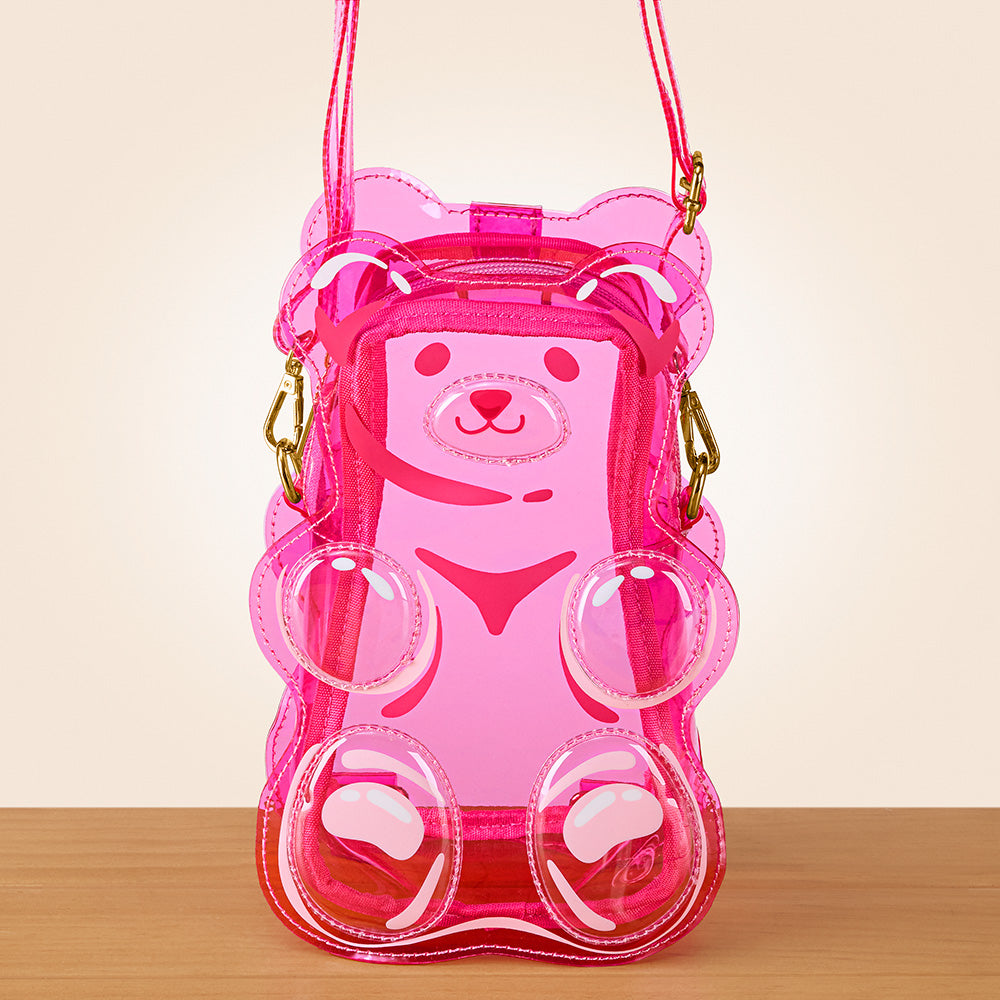 Jelly Handbag Gummy Bear-Pink refers to a type of handbag made from a soft, flexible, jelly-like material, designed to mimic the appearance of gummy candy. This bag is characterized by its translucent, colorful appearance. The pink color adds a playful, fun element to the design.