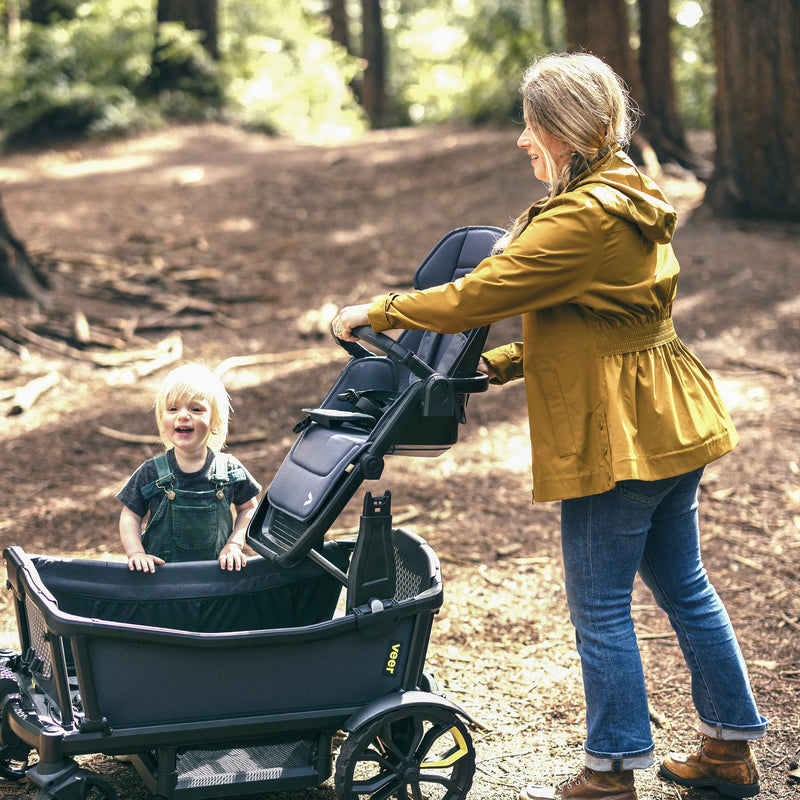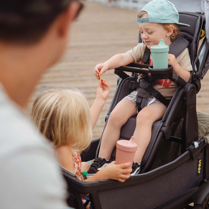 Quickly and easily attach the Switchback Seat to any Cruiser for an elevated ride and recline for your little one. Or, attach the Veer Bassinet for your infant.