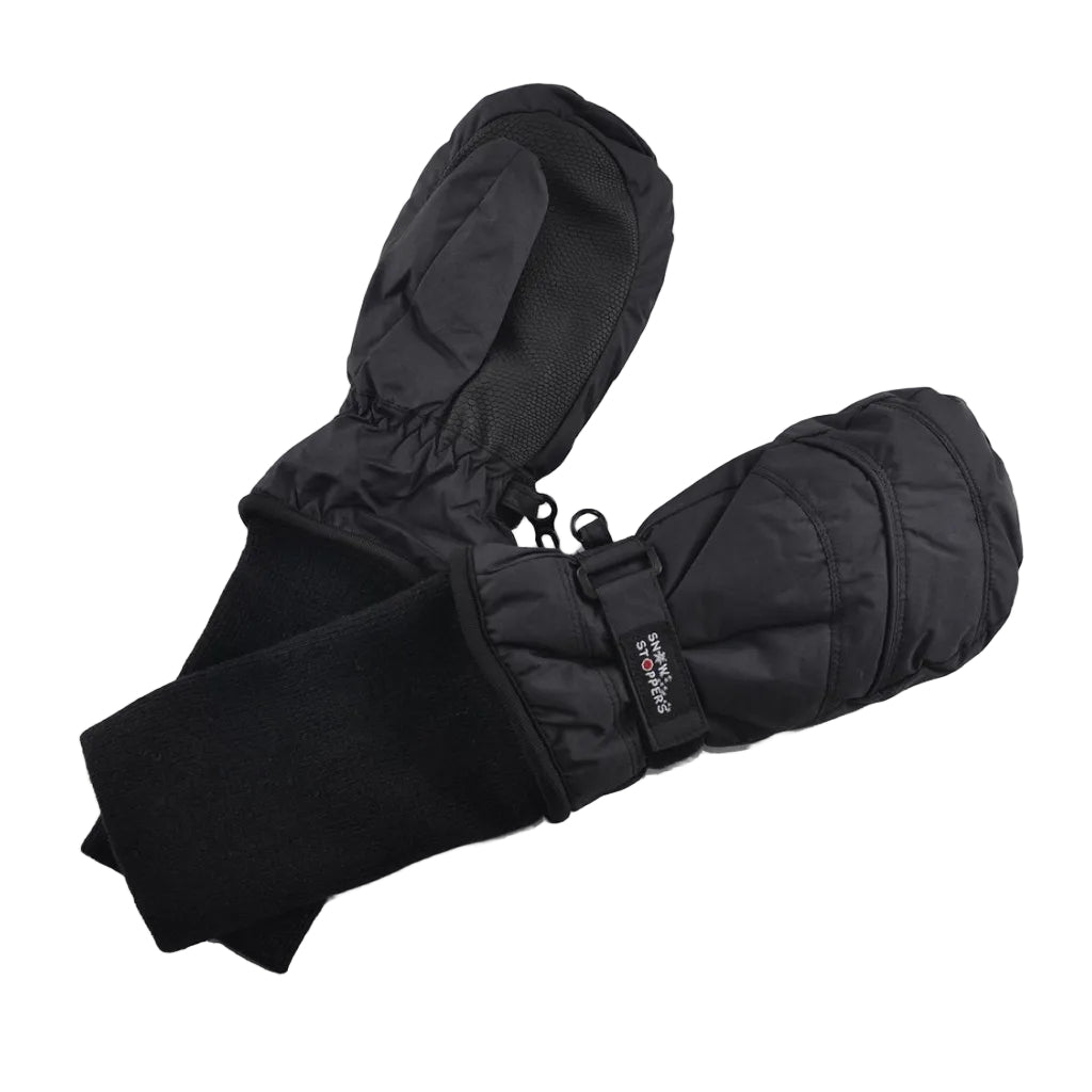 Easy‑on, stay‑on winter mitts –Waterproof Stay‑On Mittens No Thumb (Black) by SnowStoppers feature a clever no‑thumb design that’s simple to slip on and stays put through snowy play.