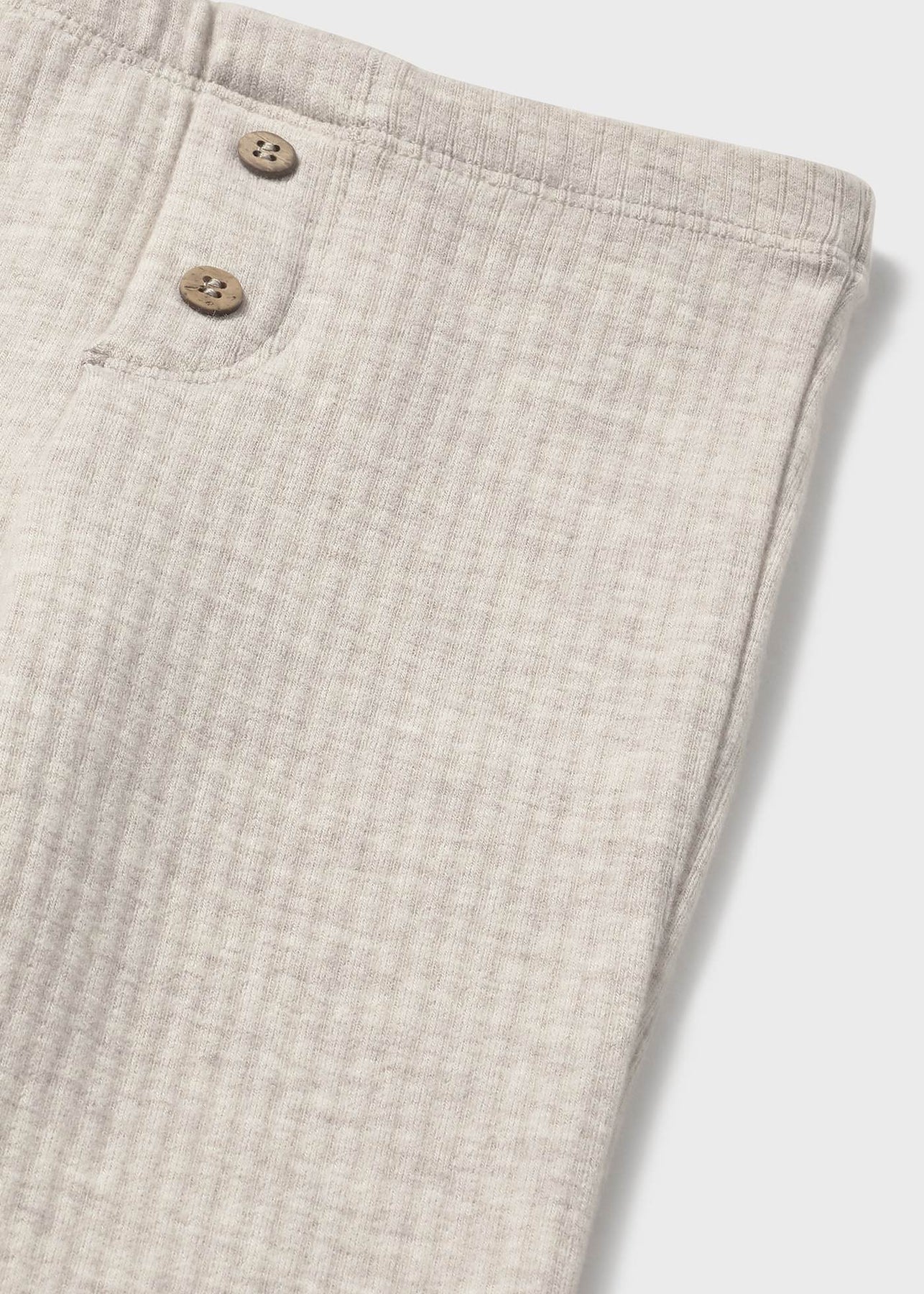Add a touch of vintage charm to your little one's wardrobe with the Mayoral Baby Ribbed Flare Leggings in Sand Heather. Crafted from a soft cotton blend, these leggings feature a ribbed texture that offers both comfort and style. The flared hem and decorative buttons add a playful flair, making them perfect for pairing with cozy sweaters or tunics. Whether it's for a casual day out or a special occasion, these leggings provide both functionality and fashion.