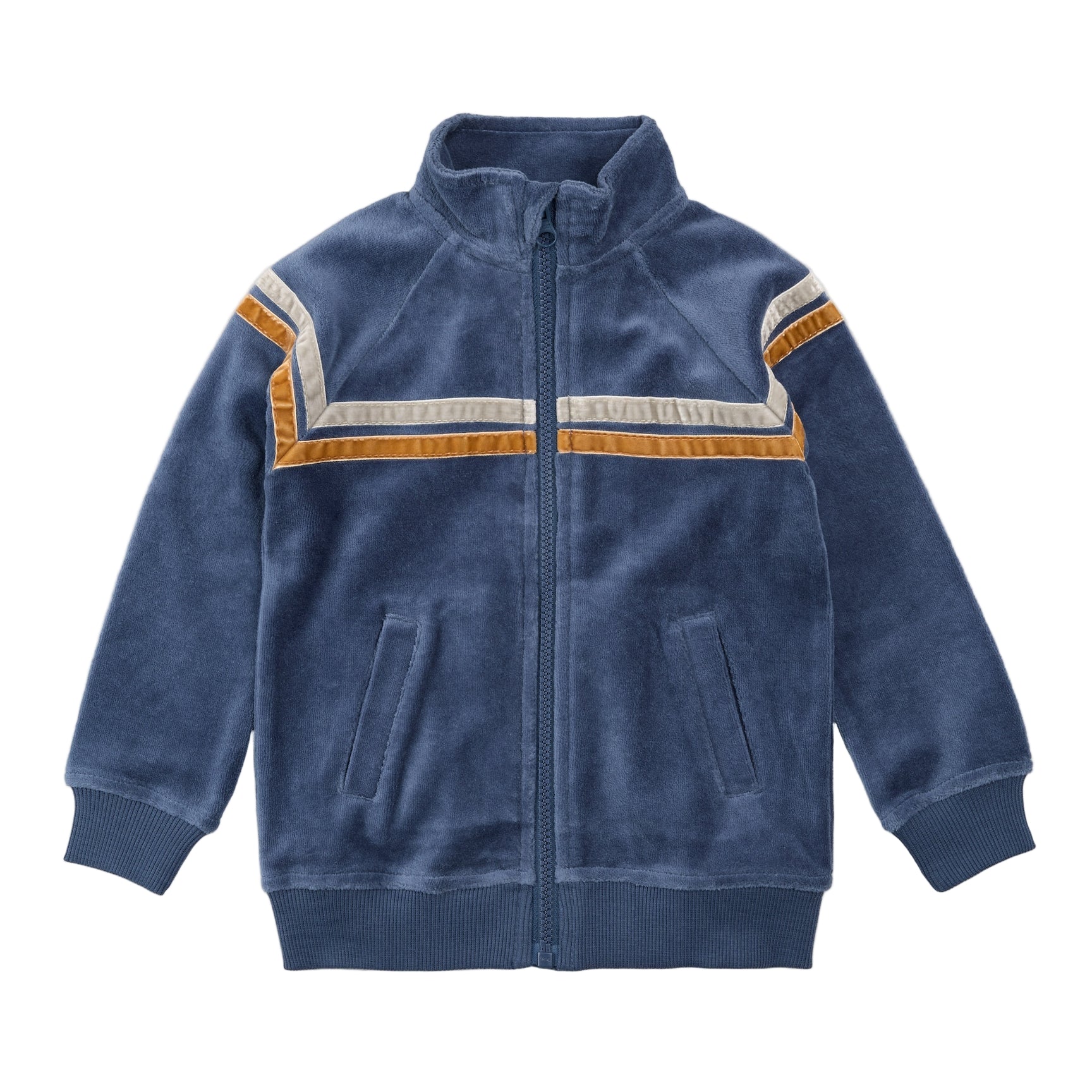 Super comfy, sporty and effortlessly cool, this vintage-style, velour jacket has a funnel neck for added warmth and a full-length zip for easy layering. Pockets on either side can hide away little hands for that unbothered, cool dude look. Pair with the matching joggers from the same range and there’s even a set for little brothers to twin with.