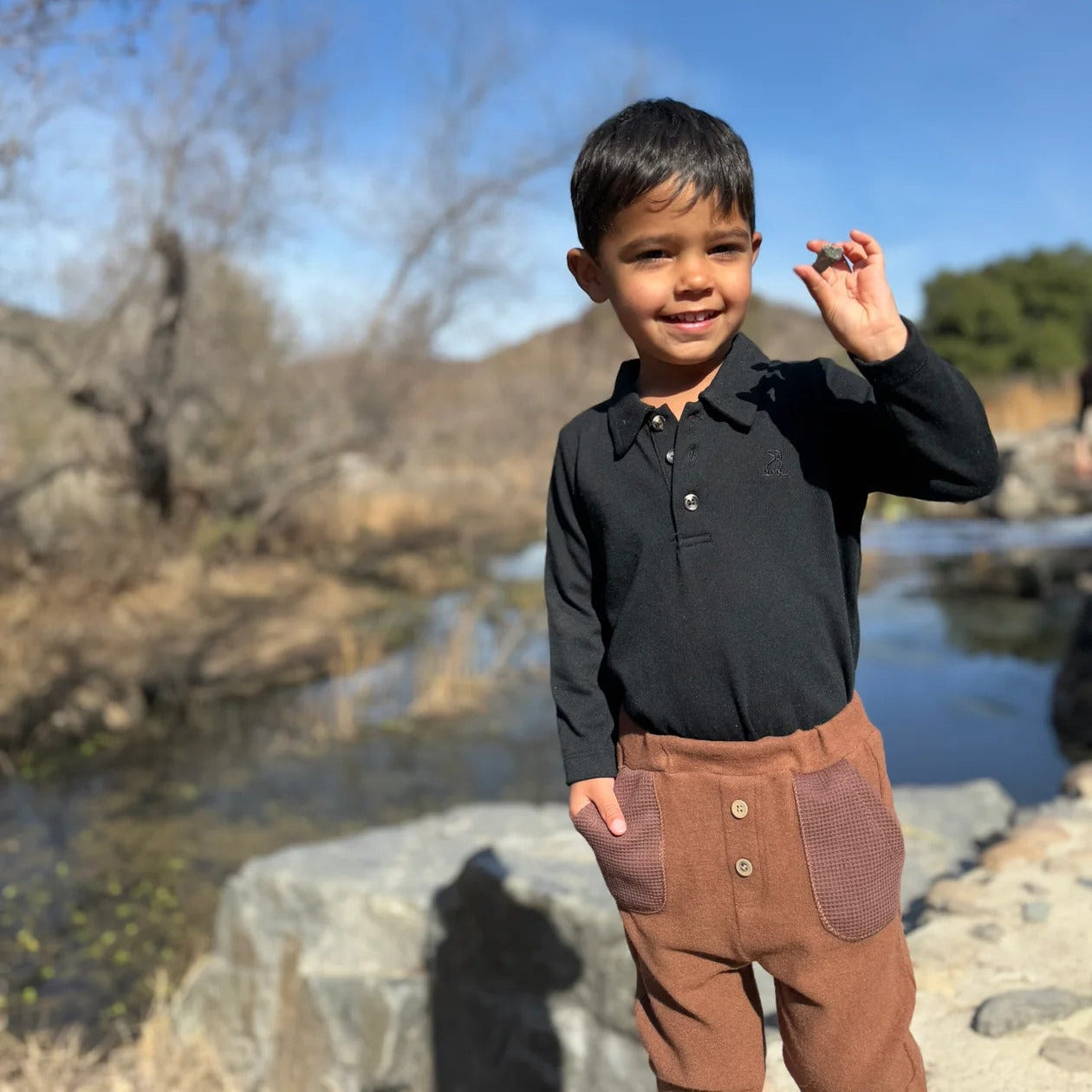 Keep your little one comfy and ready for adventure with these Jackson Jersey Pants by Me & Henry. The soft, stretchy fabric moves with them through playtime, while the rich brown color adds a touch of cozy style. Perfect for everyday adventures or lounging around in ultimate comfort.