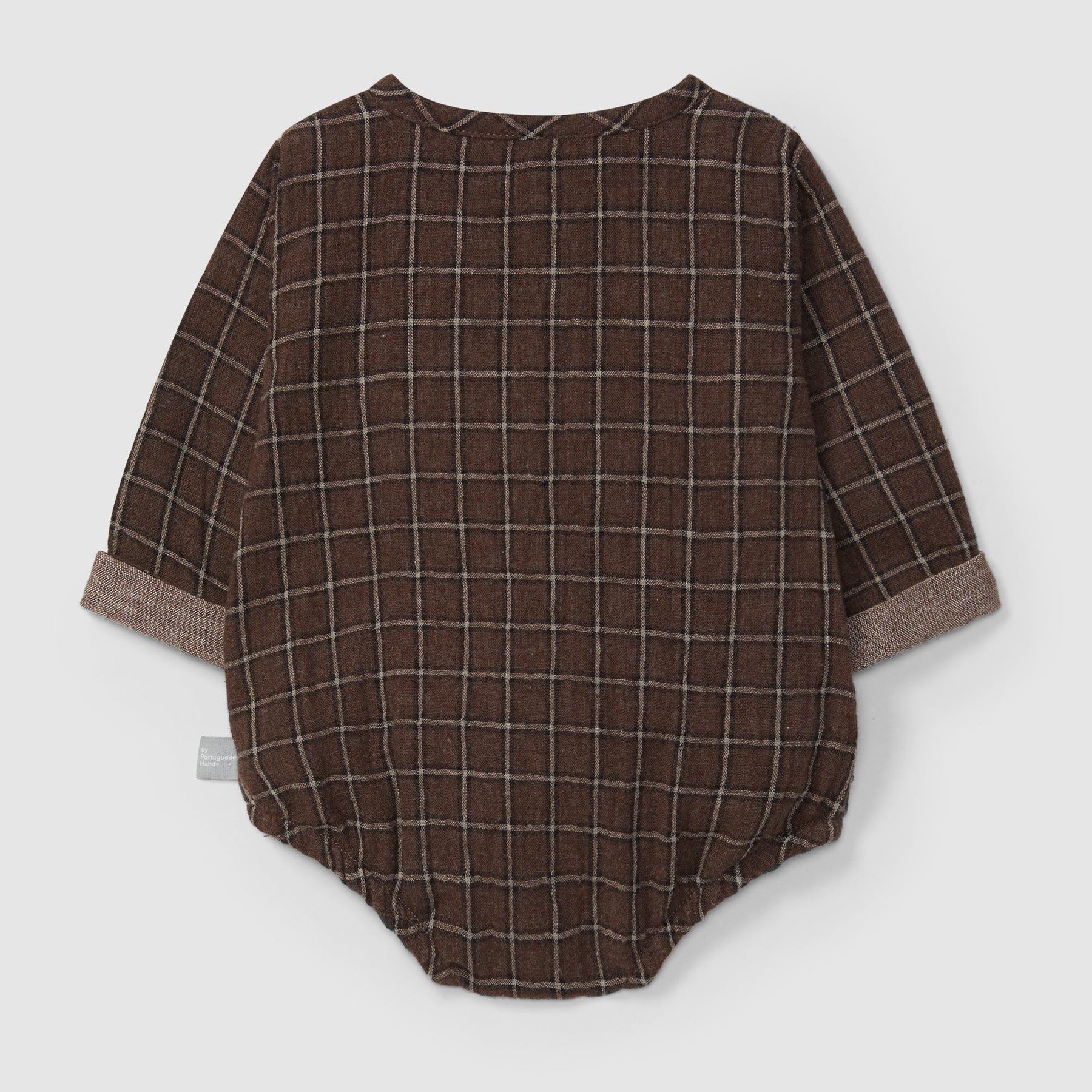 The Organic Double Gauze Check Bodysuit - Brown by Snug is crafted from breathable organic cotton gauze, making it soft, lightweight, and gentle on delicate skin. Designed with a charming brown check pattern, this bodysuit offers both style and everyday comfort.