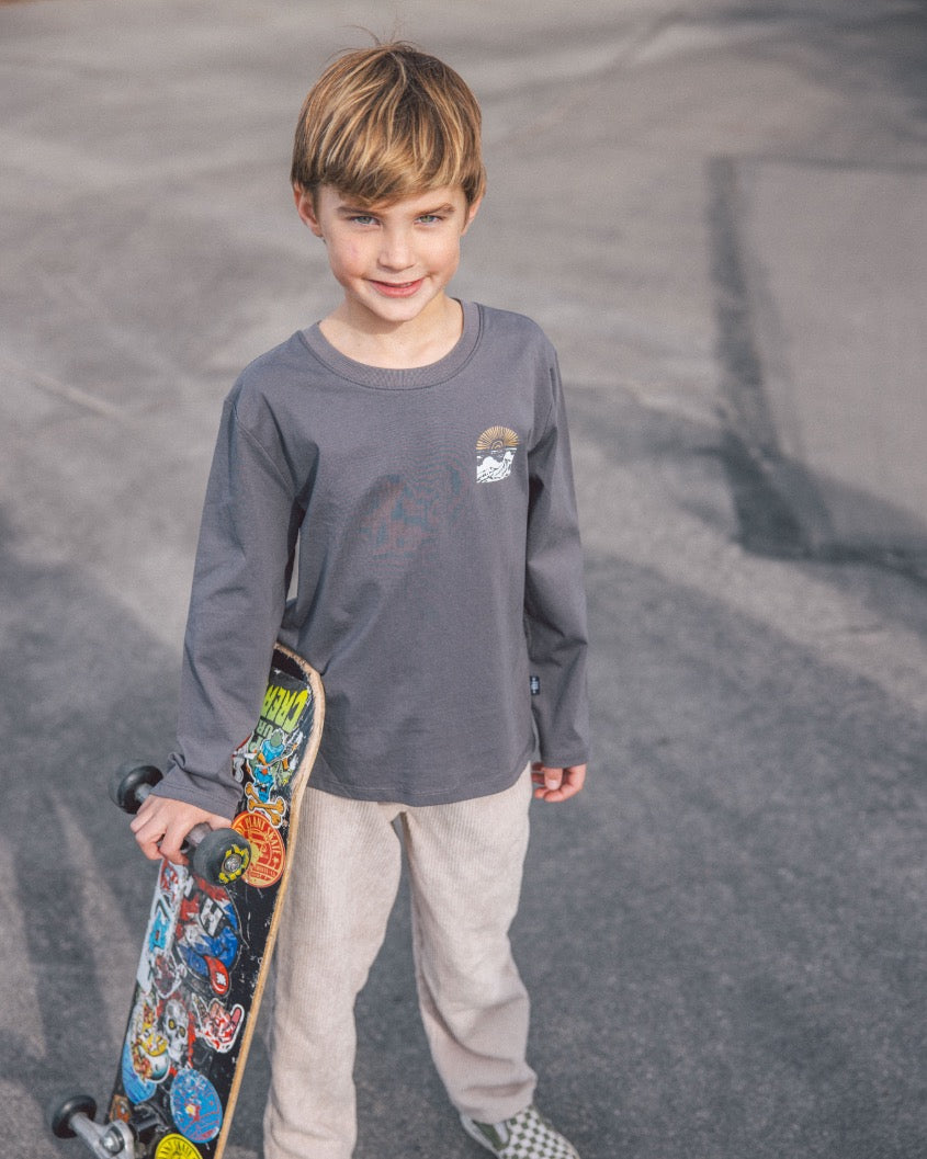 This long sleeve tee will quickly become your kids go-to for everyday wear. From its exceptional comfort and durability to its vintage inspired graphic, it's got all the laid back style and vibes they'll love. Plus, it's easy to layer under jackets and flannel.