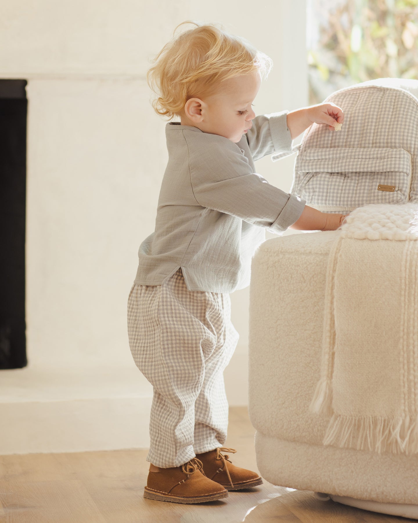 Quincy Mae's Zion Shirt, crafted from soft cotton gauze, features a boxy fit, long sleeves, and a button-front closure for easy wear. Pair with the Woven Pants for a coordinated, dapper look.