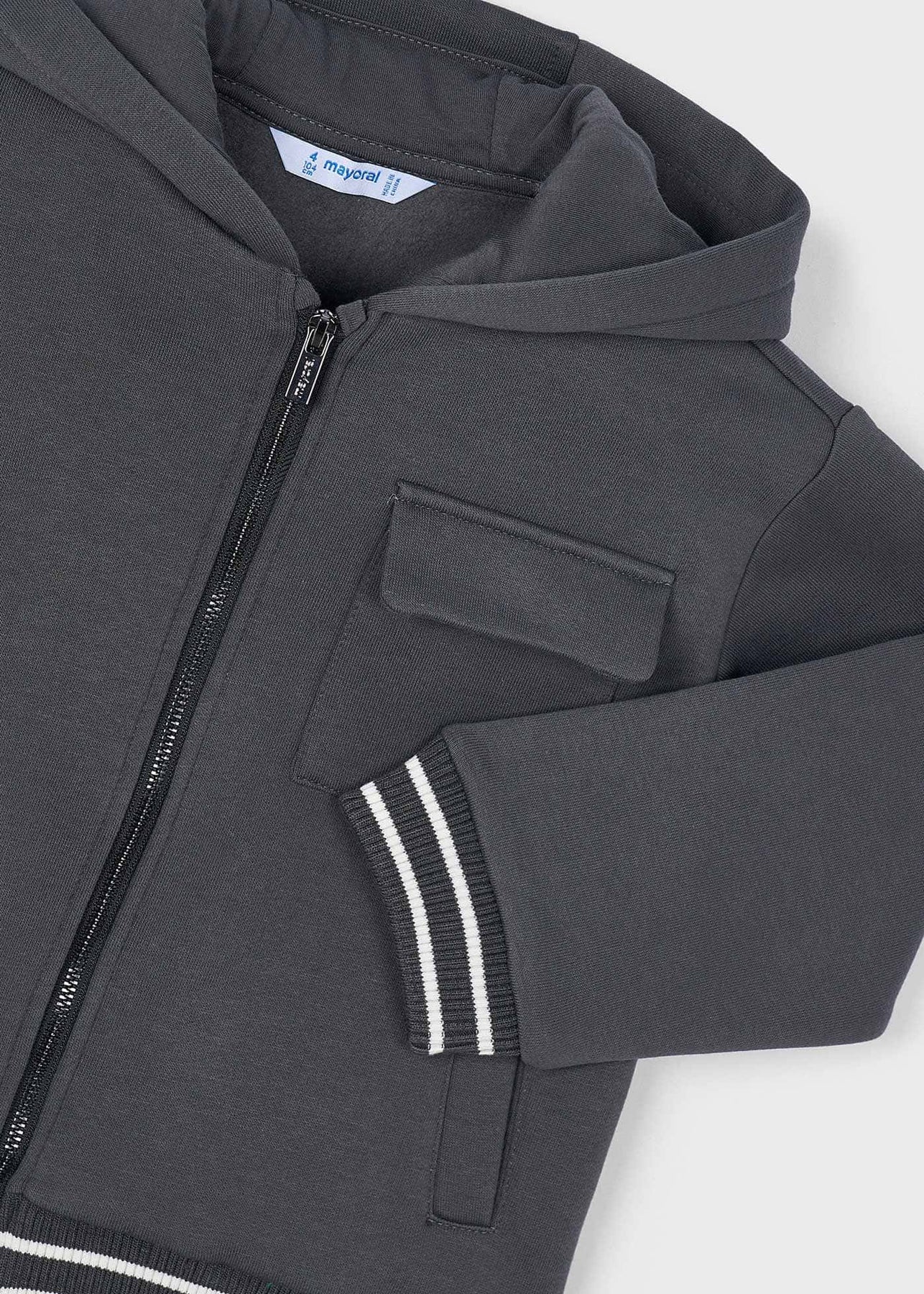 Wrap your child in comfort and style with the Mayoral Zip-Up Explorer Hoodie in Slate. This long-sleeved hoodie features a front zip closure for easy on-and-off, complemented by a hooded neckline and contrasting lower-section details that add subtle visual interest. Crafted for everyday wear, it’s a practical yet stylish addition to any little explorer’s wardrobe.