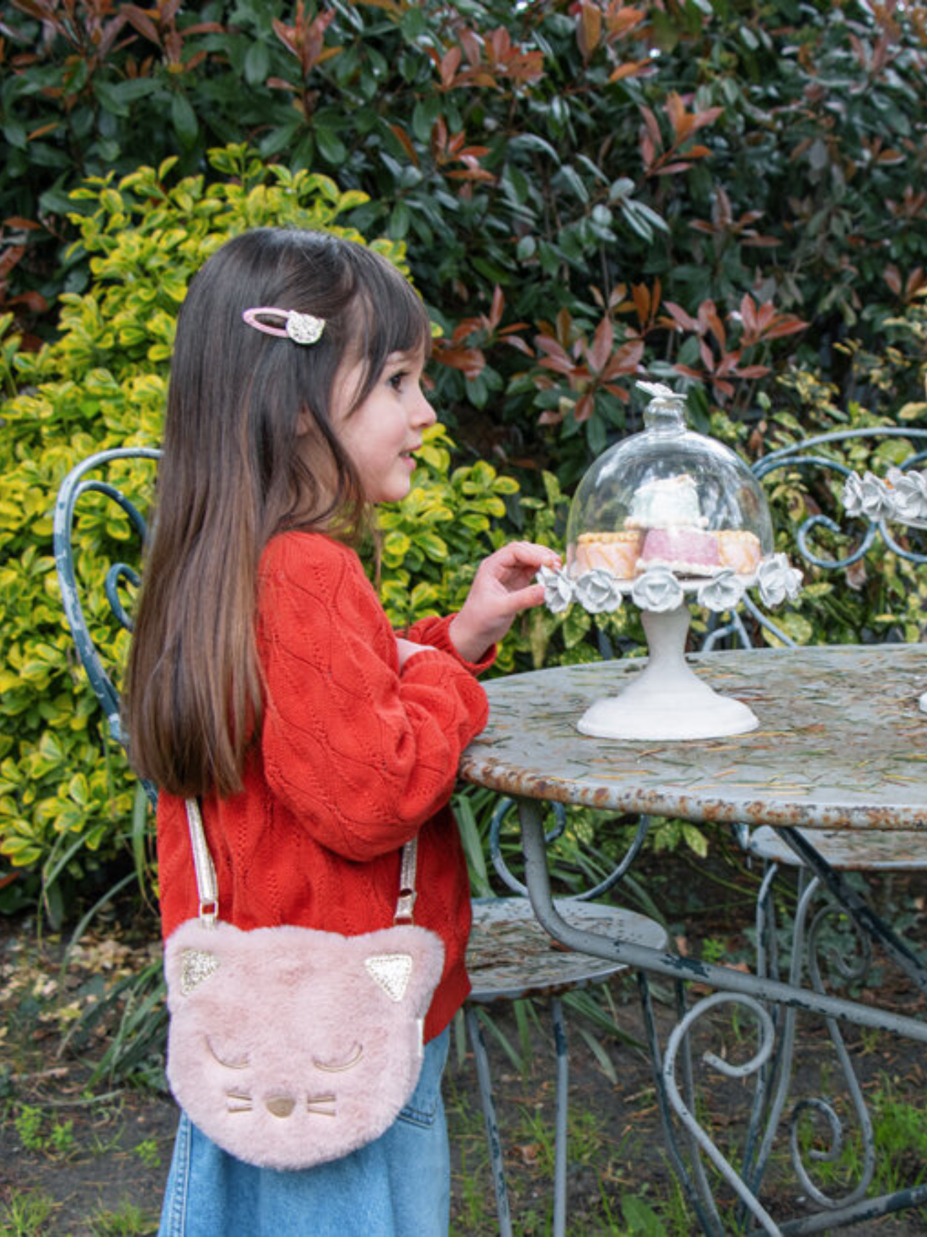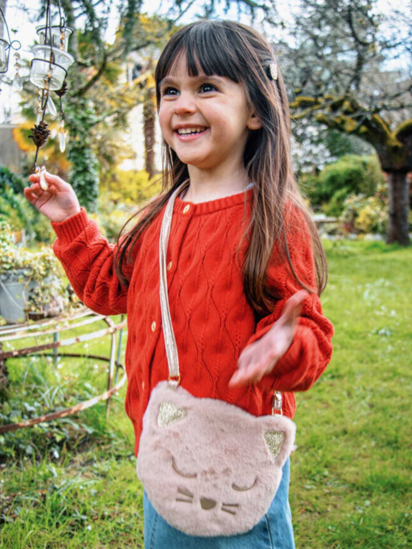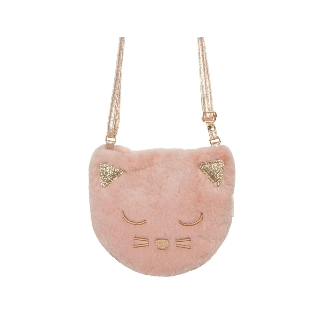 This Clara Cat bag is purrr-fect in every way! Made from super soft dusky pink faux fur with a sweet embroidered face and gold glitter ears. This bag features a magnetic dot closure, a gold heart lining and an adjustable gold strap with a break point for safety.