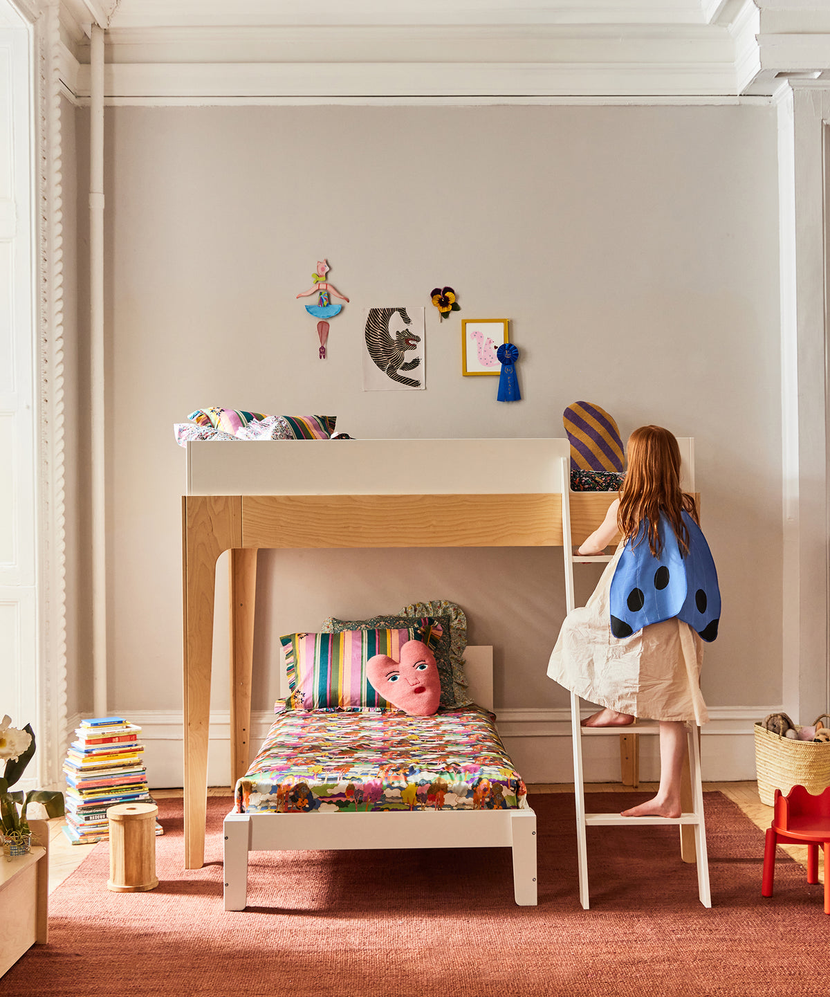 The Perch Full Loft Bed transforms vertical space into a world of possibilities. Ethically made in Europe it shares the same trusted design of Oeuf's best-selling Perch Bunk Bed, offering both functionality and style.