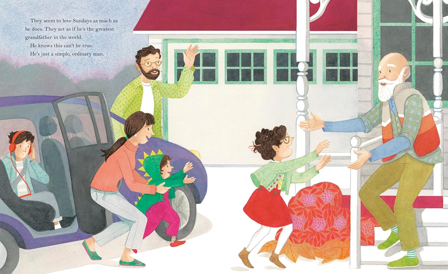 Grandpa loves Sundays– that’s when his three grandchildren come to visit. They act out plays, catch fireflies in the yard, and celebrate Jewish holidays together. His grandchildren bestow affection and admiration on him. Sometimes, though, he wonders why they think he’s so great? Should he tell them that he’s just an average, ordinary man?