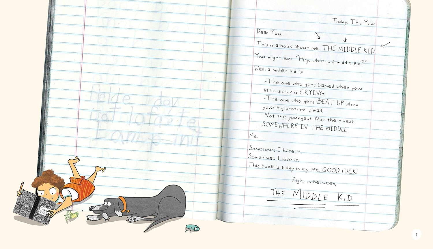 Readers experience a day in the life of a middle kid, and all the highs and lows of a life in-between. When you're the middle kid, you're never the first nor the last to do anything. You're not the tallest or the smallest; you're babysitting one sibling but teased by the other. Stuck between a bossy older brother and a naive younger sister, Middle Kid feels left out of two worlds. But even if—and maybe especially because—it's always overlooked, this kid's own world is just as big and important as his siblings'.
