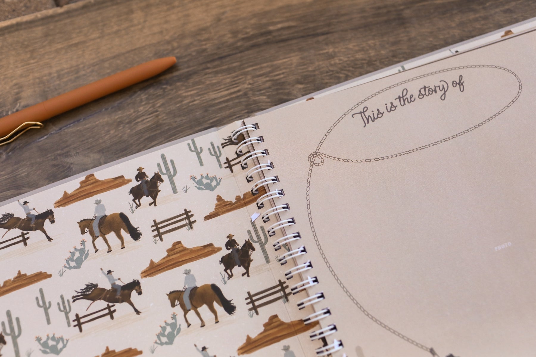 The My First Rodeo Memory Book features an illustrated cover with horses, lassoes, and cactus in the warm, hand-drawn style consistent across the Lucy Darling line. New to the line and generating strong early interest, the book captures what parents consistently say they want from a baby keepsake: a physical record of the first year in their own handwriting, formatted manageably enough that they actually complete it. 48 pages focused on baby's first year, with monthly milestone spreads and a pregnancy section, plus individual birthday pages through age five and a first-day-of-school page. Wire-O bound so pages lay completely flat. Responsibly printed with soy-based inks.