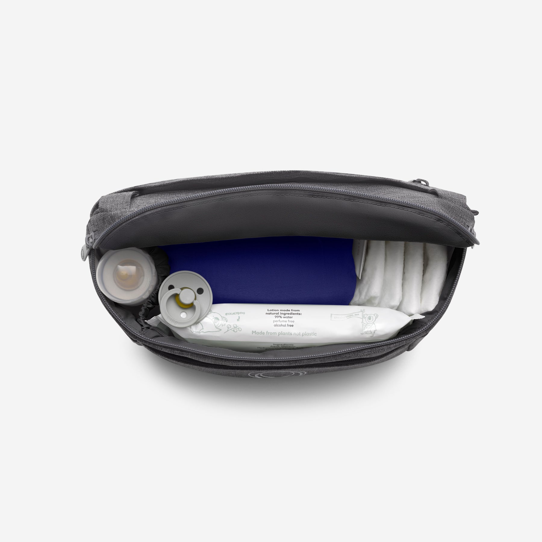The Bugaboo organizer keeps your baby essentials close by, featuring a water-repellent design and multiple pockets for easy organization. It also transforms into a sleek tote bag when needed.