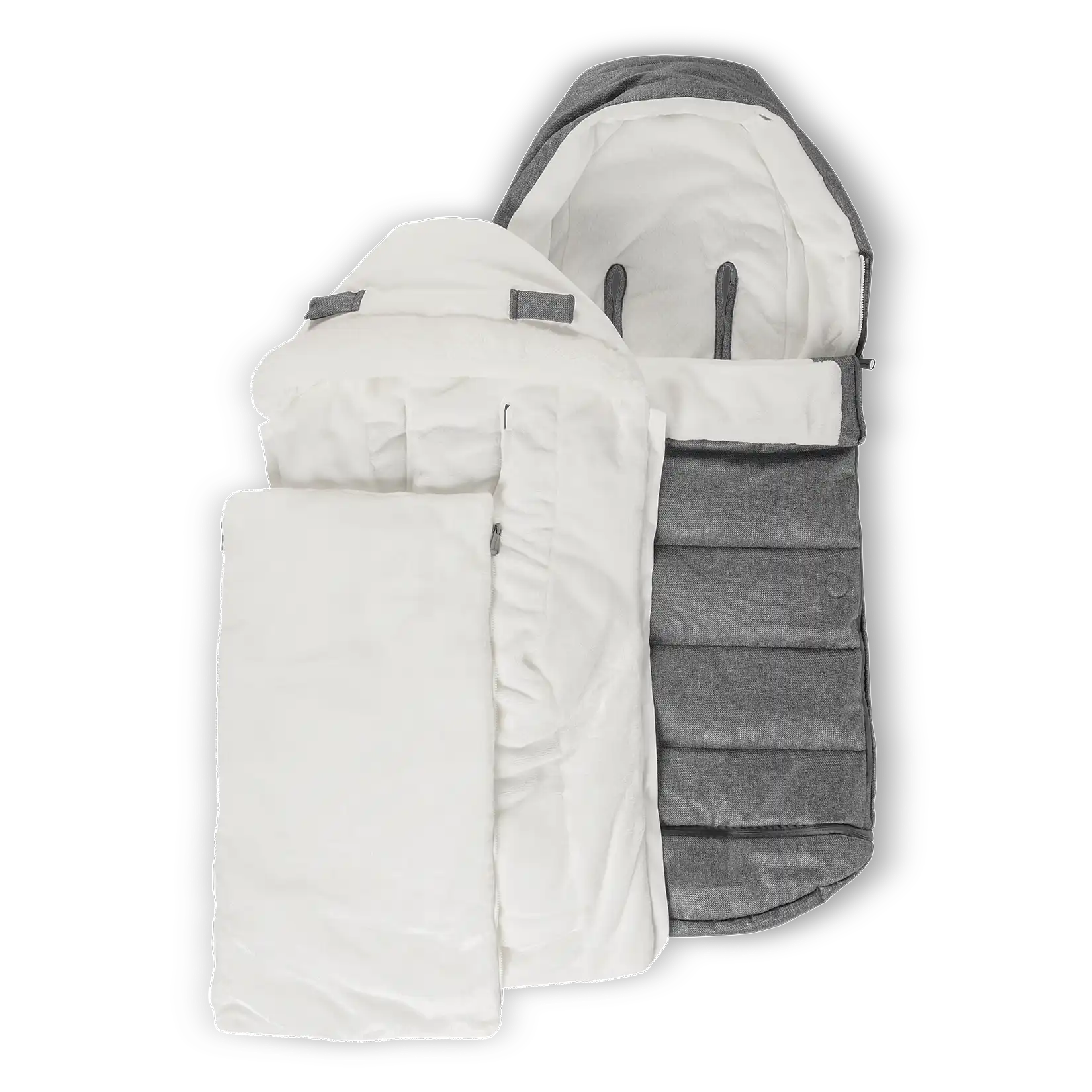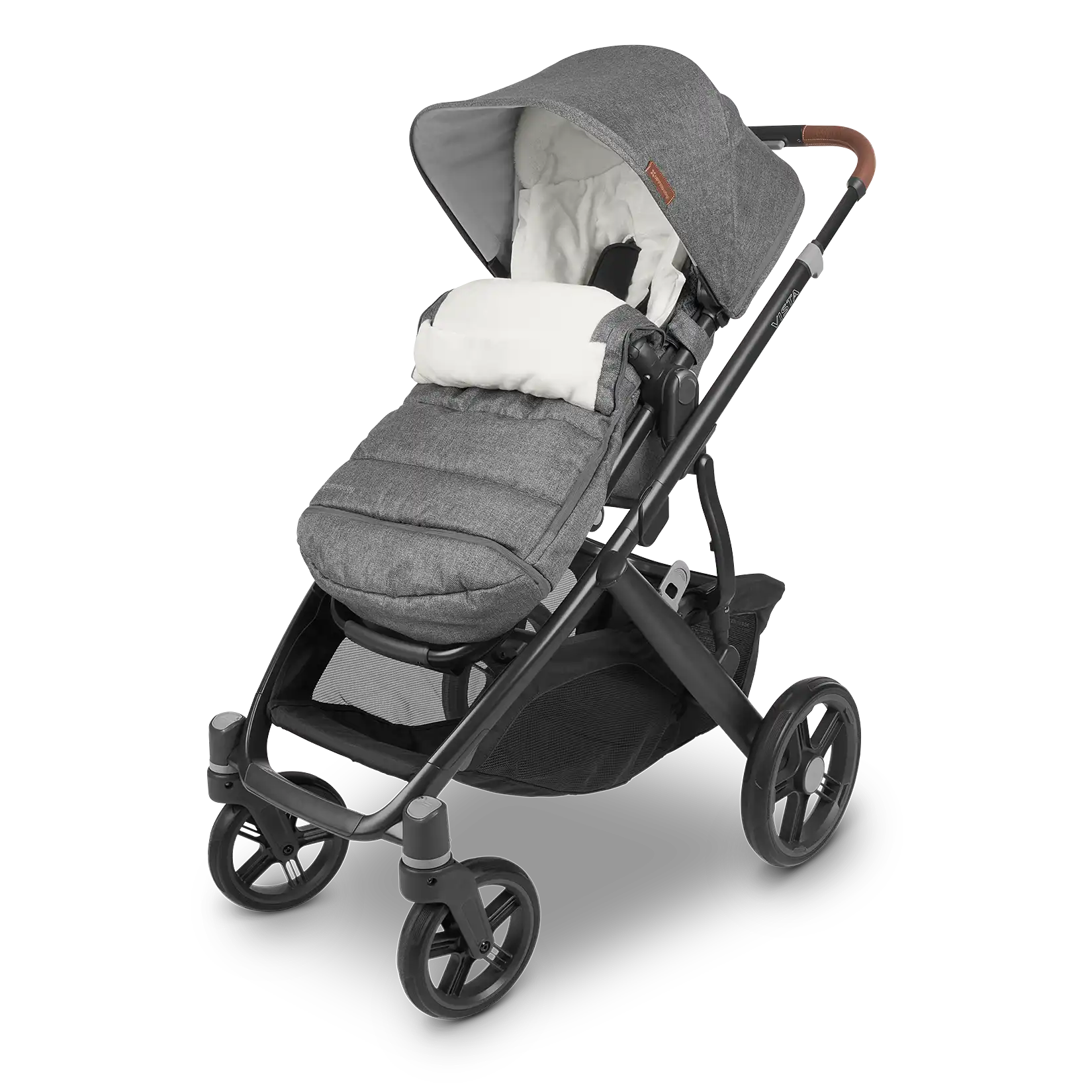 The ultra-plush CozyGanoosh footmuff provides ultimate coverage to keep your child toasty warm in inclement weather.