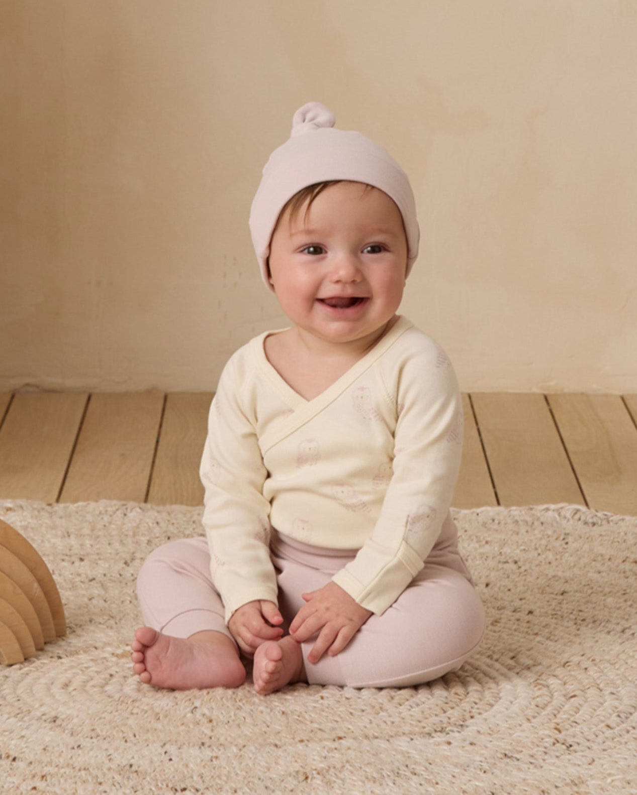 Knotted baby hat made from soft and stretchy brushed jersey for a cozy, comfortable fit.