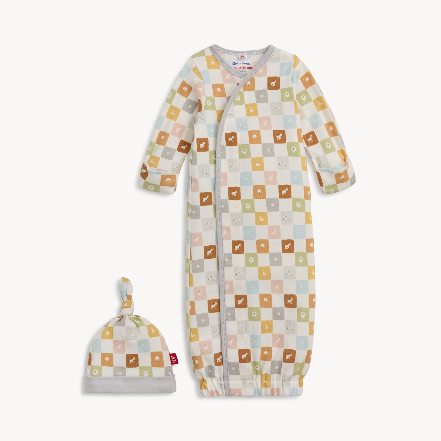 The organic cotton Open Bottom Gown & Hat Set is a newborn, late-night must-have with magnets and an elasticized bottom that take diaper changes to a new level of fuss-free efficiency. It strikes the perfect balance between a swaddle and a sleep sack, making it ideal for car rides as well. GOTS-certified organic cotton has an airy softness that feels gentle and soothing on delicate skin.