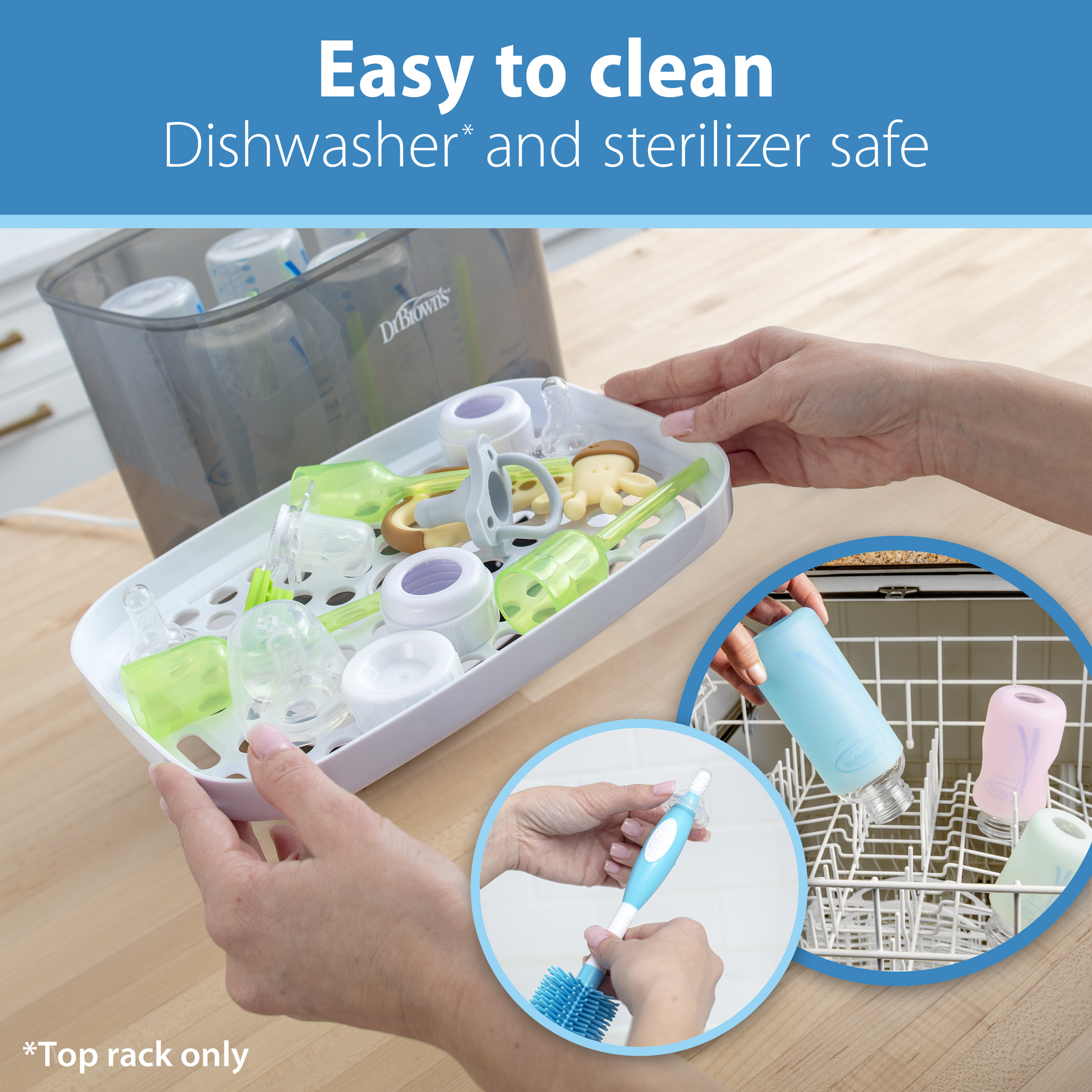 - Safe for use in dishwasher (top rack only), electric and microwave sterilizers or boiling water