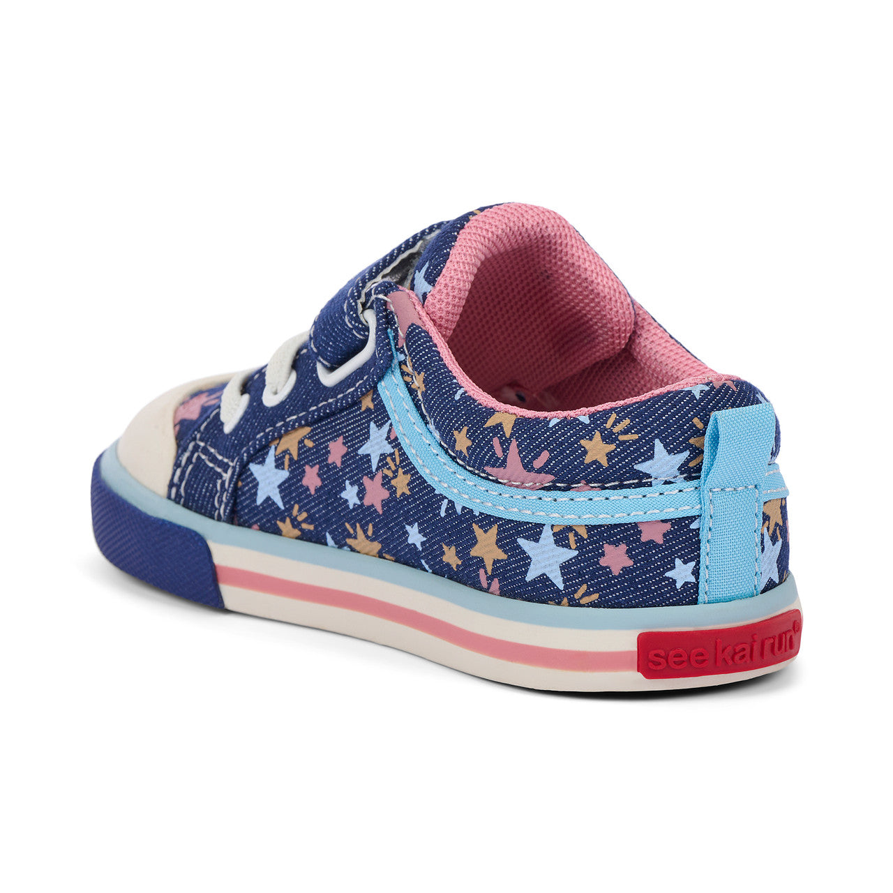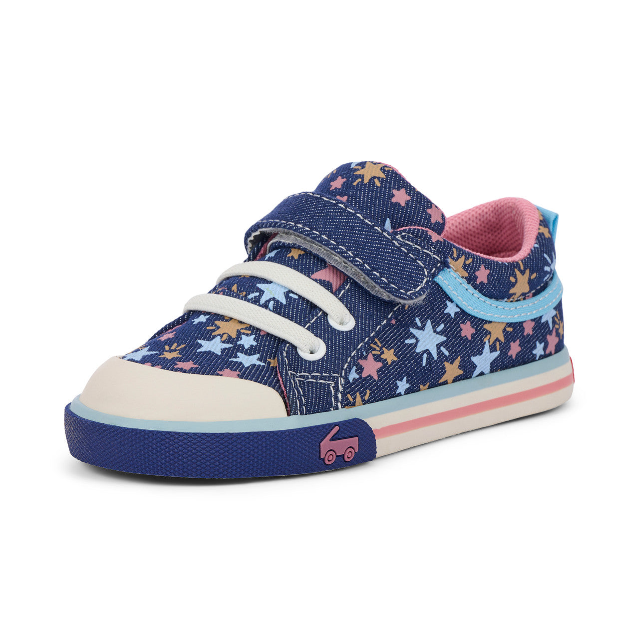 Unleash her inner star power with See Kai Run's classic Kristin sneaker, featuring colorful shooting stars on a dark denim upper. Consciously designed to be lightweight and comfortable for all-day play with durability and protection where she needs it the most; it’s the ultimate go-to shoe.