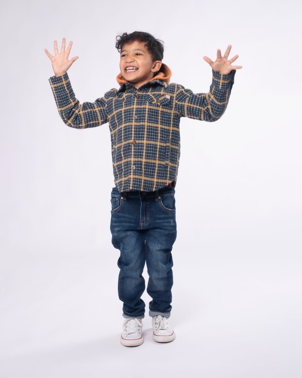 Say hello to the Glen Hooded Shirt in Evergreen Check—a perfect mix of cozy flannel vibes and cool hoodie flair! Crafted from premium, soft-to-the-touch fabric, this shirt is as comfy as it is stylish. The bold evergreen check pattern brings woodland-inspired charm, while the built-in hood adds an extra layer of warmth and laid-back style. Perfect for layering over tees or under jackets, it’s ready for school days, backyard explorations, or family outings. Parents will love its durable quality and easy-care design, while kids will love its effortless cool factor.