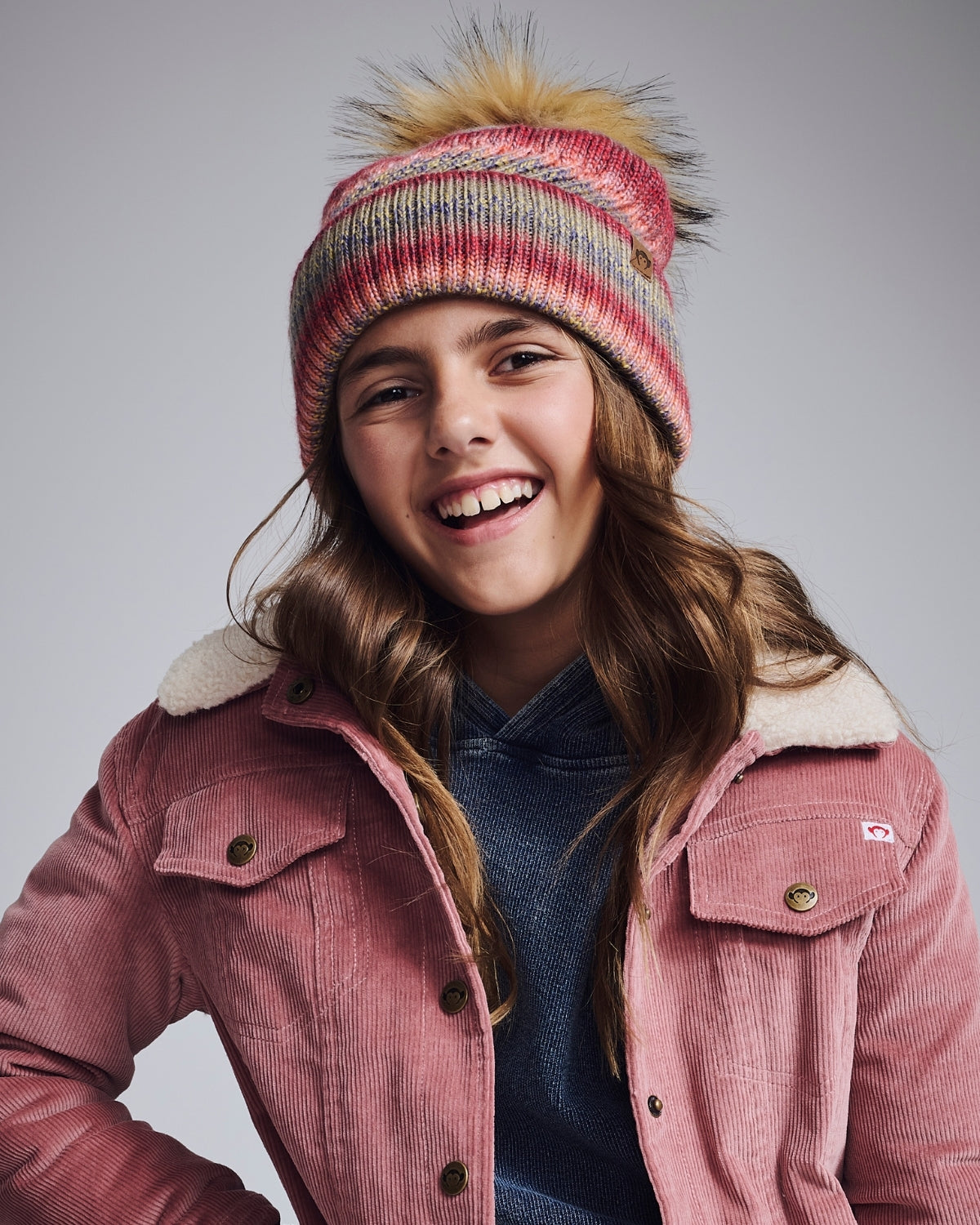 The Iris Pom Beanie in Rose is the perfect blend of cozy and cute, making it a must-have winter accessory for your little one. Crafted from soft, warm fabric, this beanie features a playful pom pom on top and a stylish mix of pink, red, and beige tones that’ll brighten up any cold day. It’s the perfect balance of warmth and fun, keeping ears snug and heads stylish. Whether for a snow day, school, or weekend fun, this beanie adds the perfect pop of color to any winter outfit. A playful, versatile piece that kids will love!