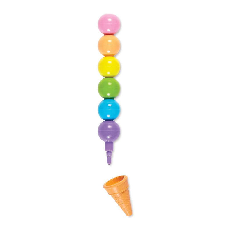 Rainbow Scoops Stacking Erasable Crayons are a fun-loving 6 color crayon set. Each ice cream scoop has a single colored erasable crayon that lets you mix and match the 6 scoops! Each crayon comes with a fine point too, so coloring in fine details won’t be a problem. And the cone is actually a vanilla scented eraser! An easy crayon to take when traveling!