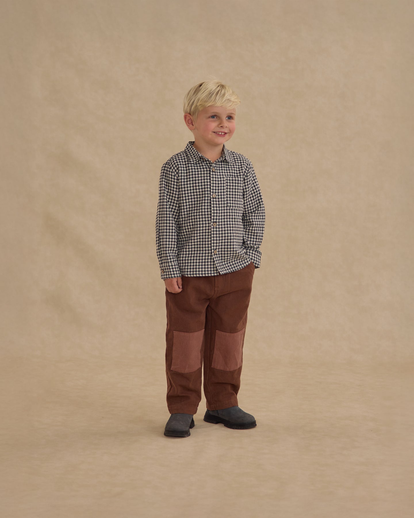 Collared Long Sleeve Shirt - Black Gingham by Rylee + Cru
