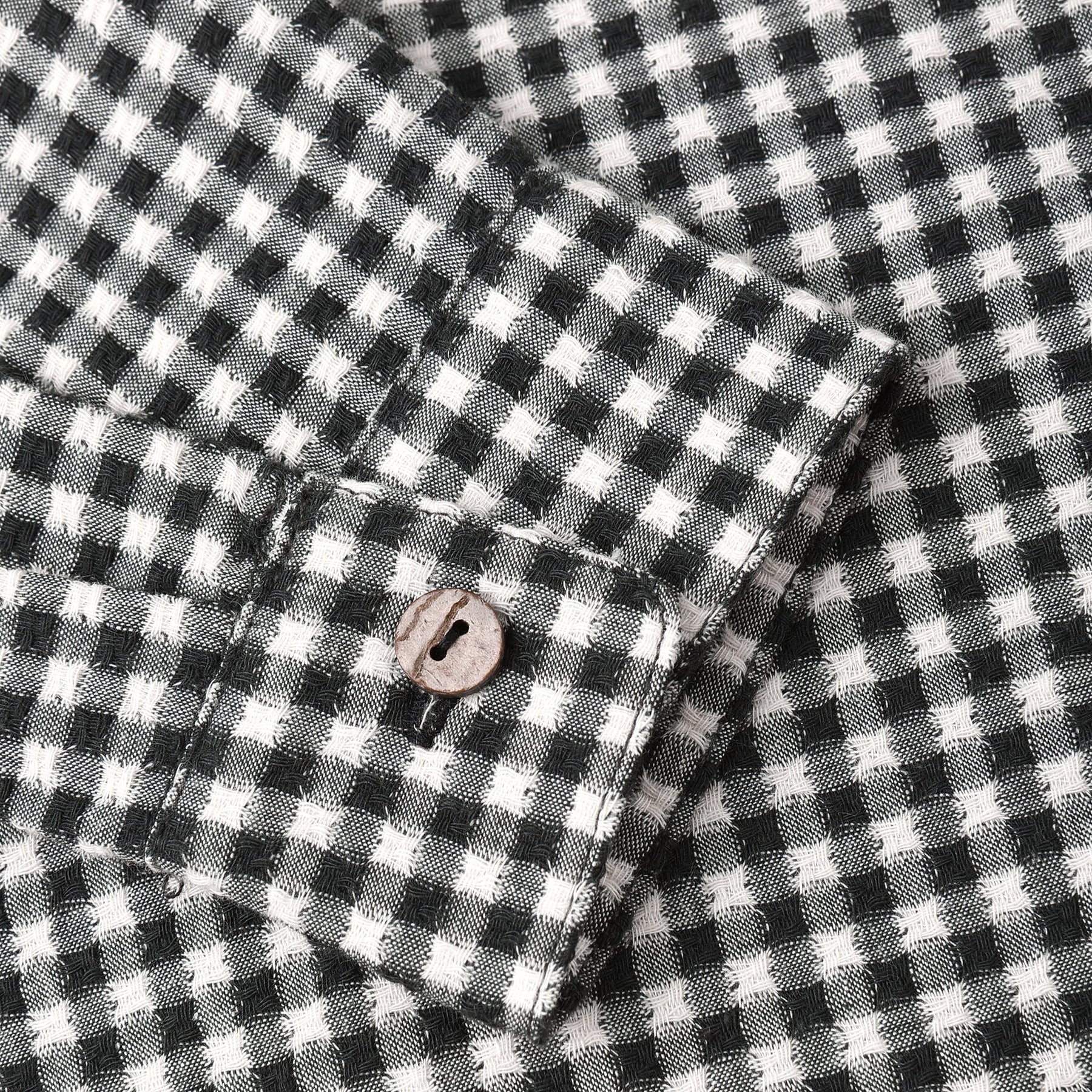 Classic Gingham Charm – A timeless collared button-up in chic black gingham, perfect for adding understated style to any outfit.