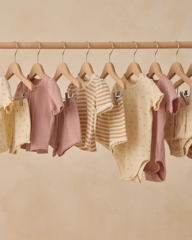 - Featuring Quincy Mae's 'mauve ditsy' print on 'natural' hue