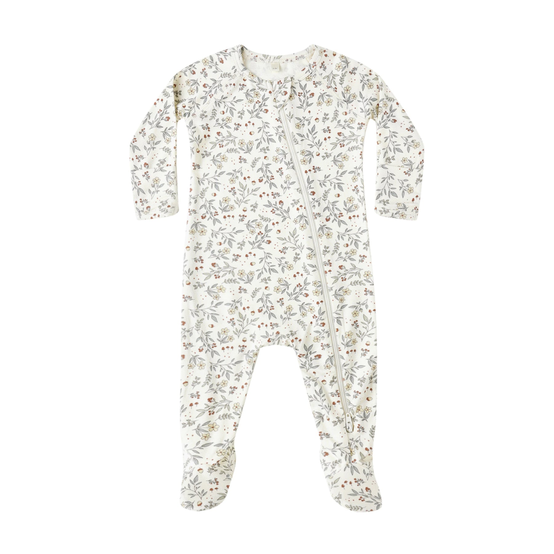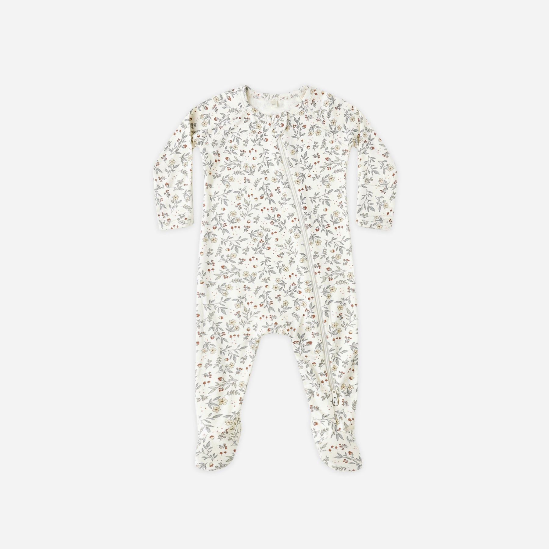 Full double-zip footie crafted from Quincy Mae's soft and stretchy bamboo fabric. Fold-over hand mitts included on sizes NB – 3-6M. Raised screen print on soles of size 6-12M for added traction.