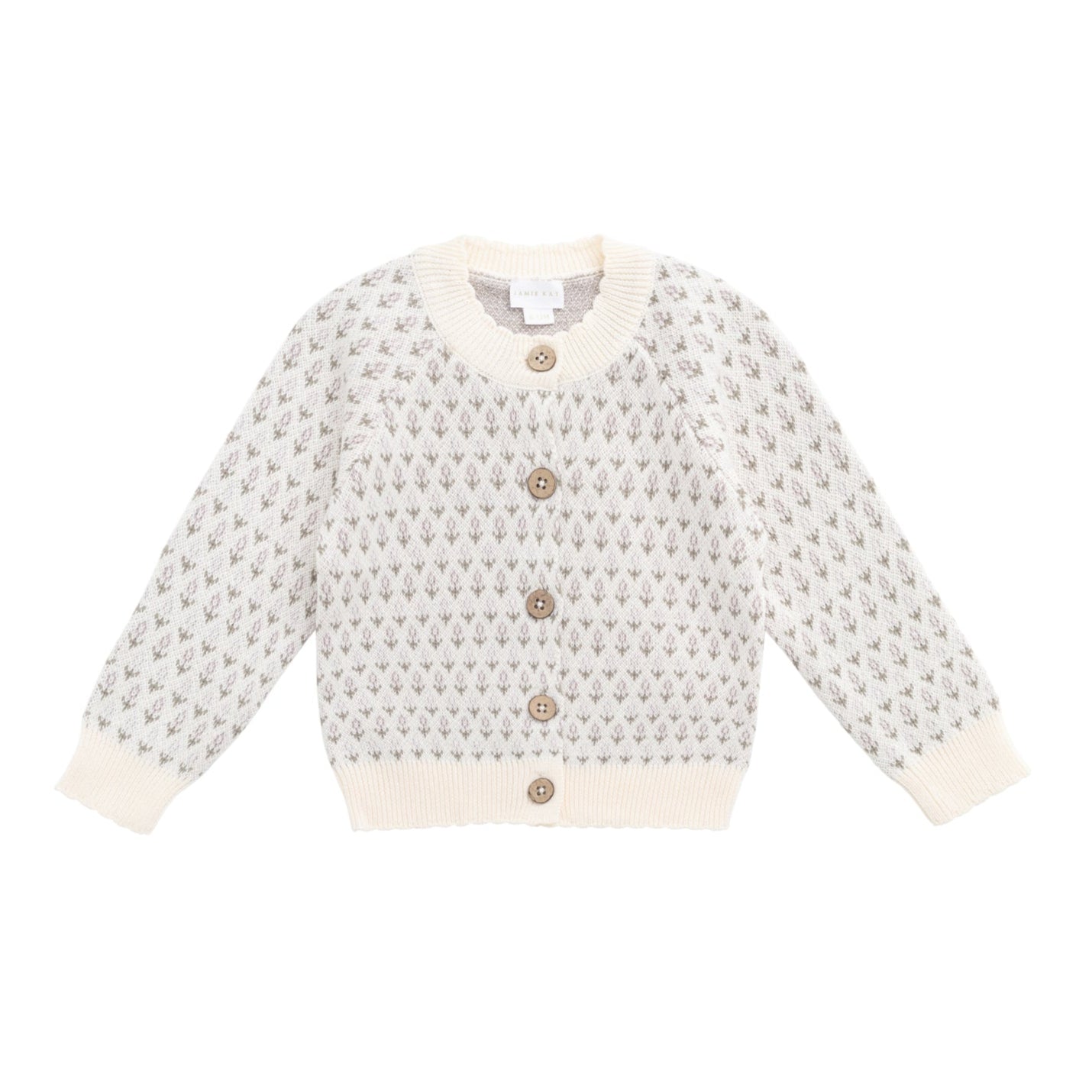 A beautifully crafted knit, the Savannah Jacquard Cardigan in Sheer Pink is made from 100% cotton and features a subtle diamond jacquard pattern throughout. With its soft cream-pink hue, ribbed cuffs and hem, and classic button-down front, this cardigan is a versatile layering piece for any season. Perfect over dresses, tops or rompers, it adds a gentle touch of texture and warmth to your little one’s outfit.