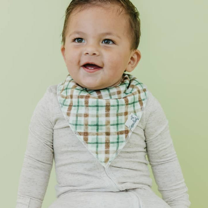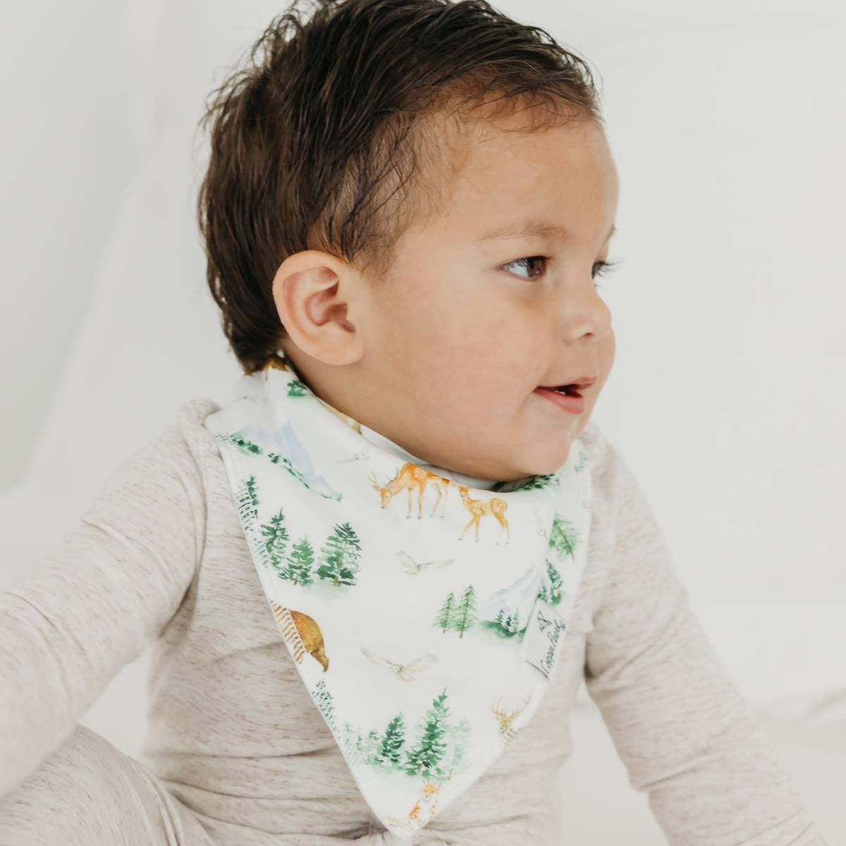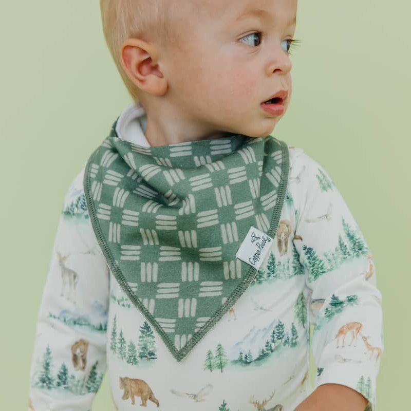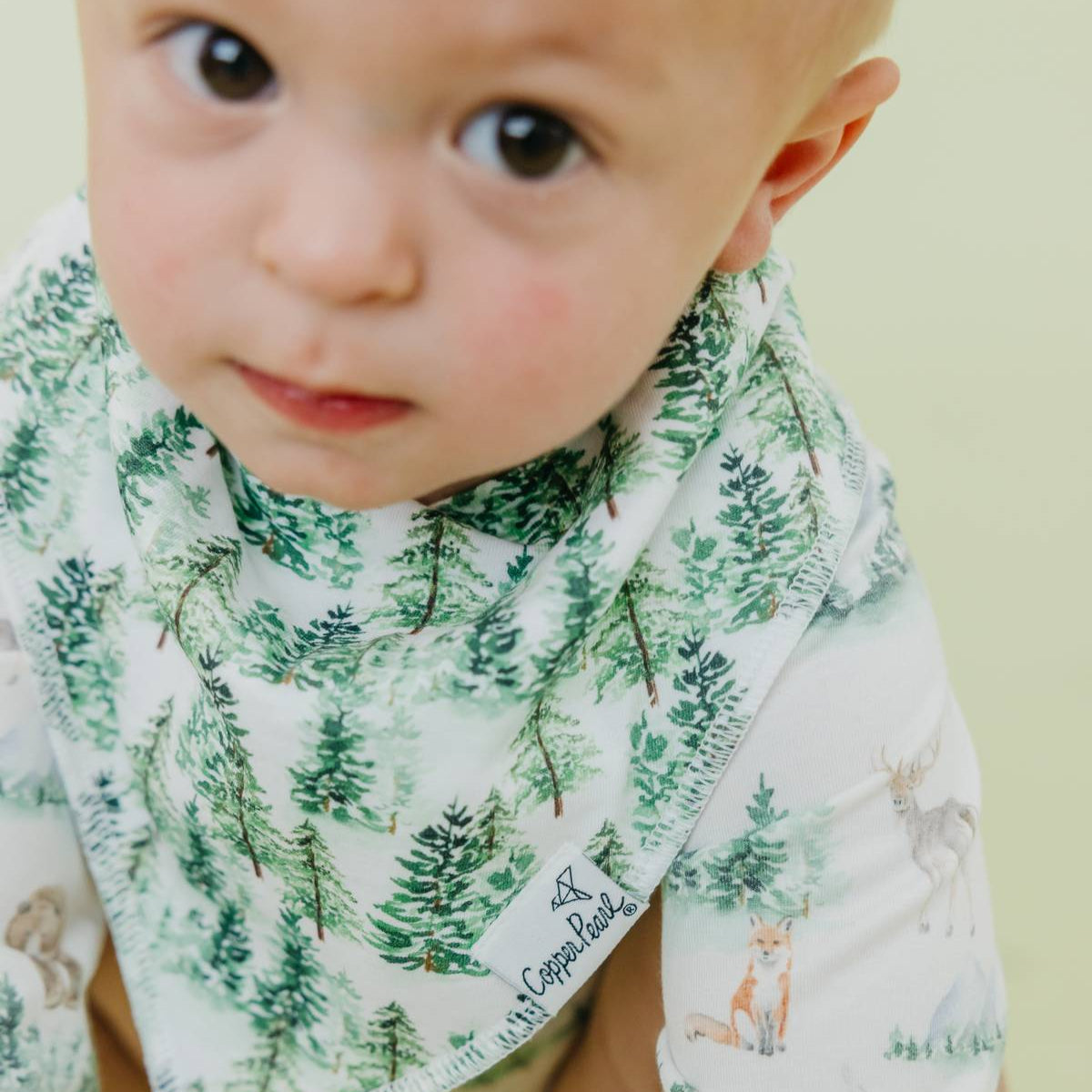Baby bibs that are trendy, fashion-forward, and functional. Your baby will have the cutest fashion accessory around, and you will keep his/her clothes clean and dry from drooling. Copper Pearl's bandana bibs a.k.a. bibdanas, are made of 100% cotton knit on the front and 100% soft, absorbent polyester fleece on the back. The front of the baby bib is a stylish knit fabric and the back is a super soft fleece that keeps your baby completely dry even with the drooliest of babies. Great for teething babies!
