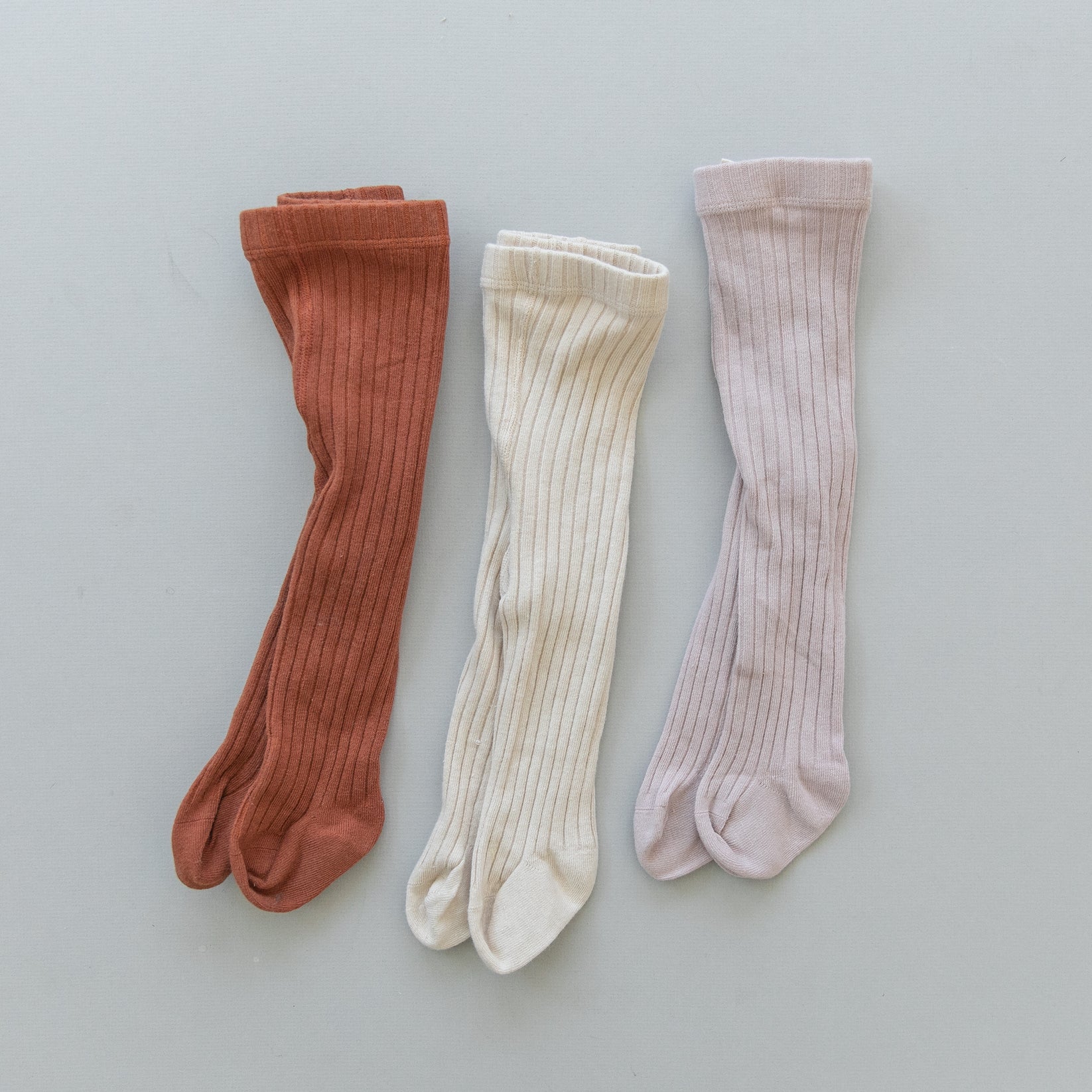 Cotton tights for babies and toddlers in the trendiest colors for fall. These are perfect to pair under hand-knit popcorn bloomers for a cozy look.