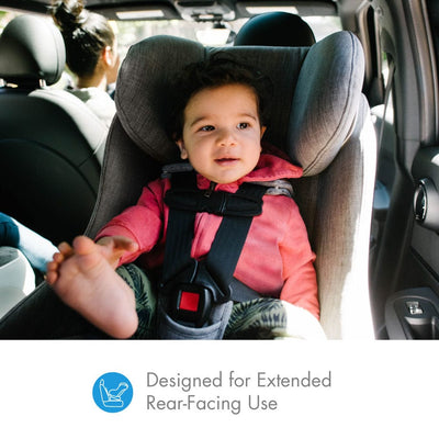 The Clek Foonf convertible car seat is designed for both revolutionary forward-facing safety performance and extended rear-facing use, allowing for most kids to remain rear-facing until their fourth birthday.
