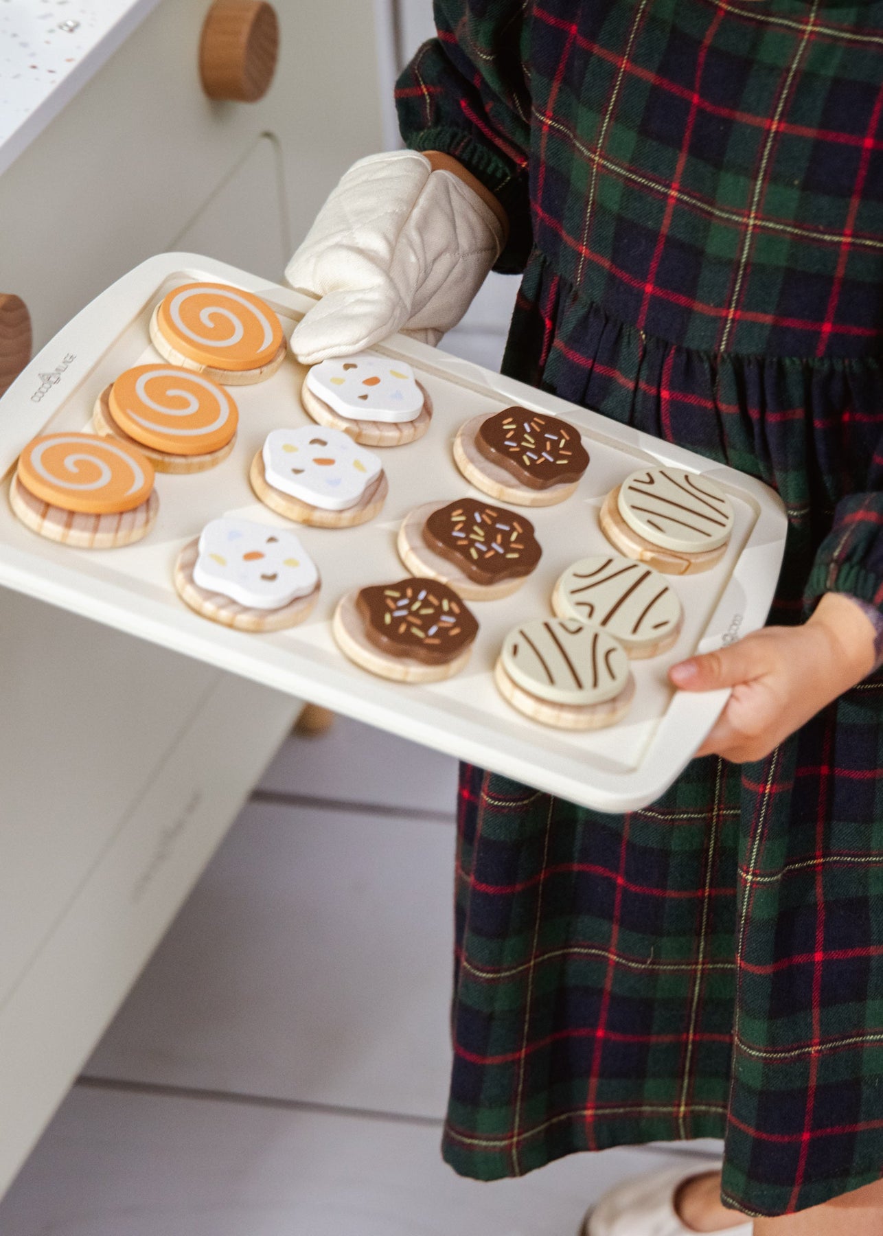 This toy seamlessly integrates with the Wooden Play Kitchen and complements the entire collection of Wooden Kitchen Accessories. This Wooden Cookies Playset is sure to become your child's favorite toy, offering hours of enjoyment and imaginative play!