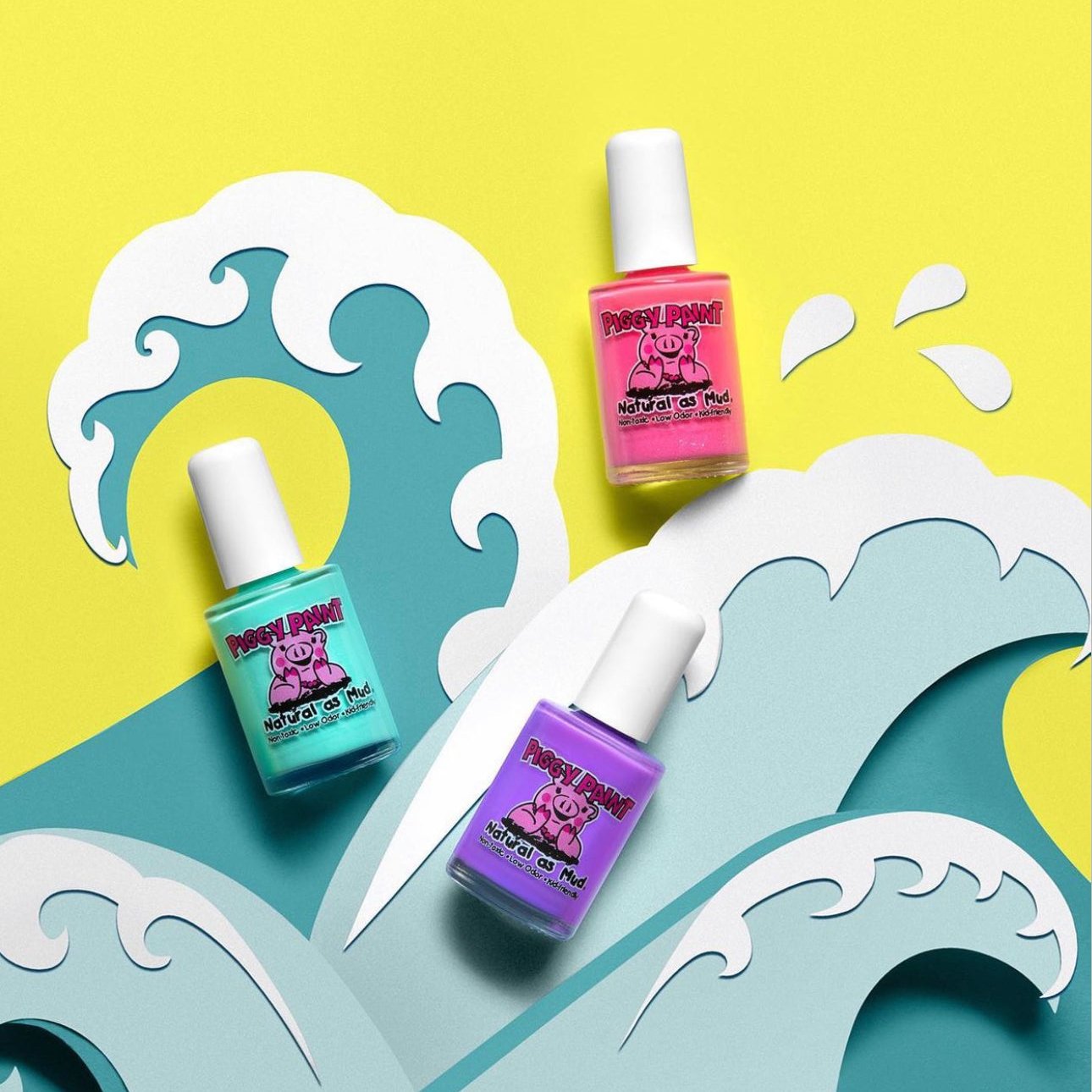 Piggy Paint is non-toxic & safe for all ages! There are no toxic chemicals; it’s free of formaldehyde, toluene, phthalates, Bisphenol A, ethyl acetate, and acetone. Say goodbye to harsh, smelly chemicals, and hello to Piggy Paint!