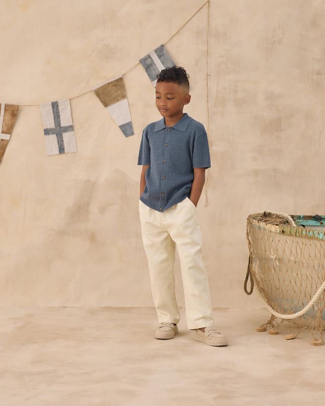 This textured knit button-down blends classic charm with a sporty edge.