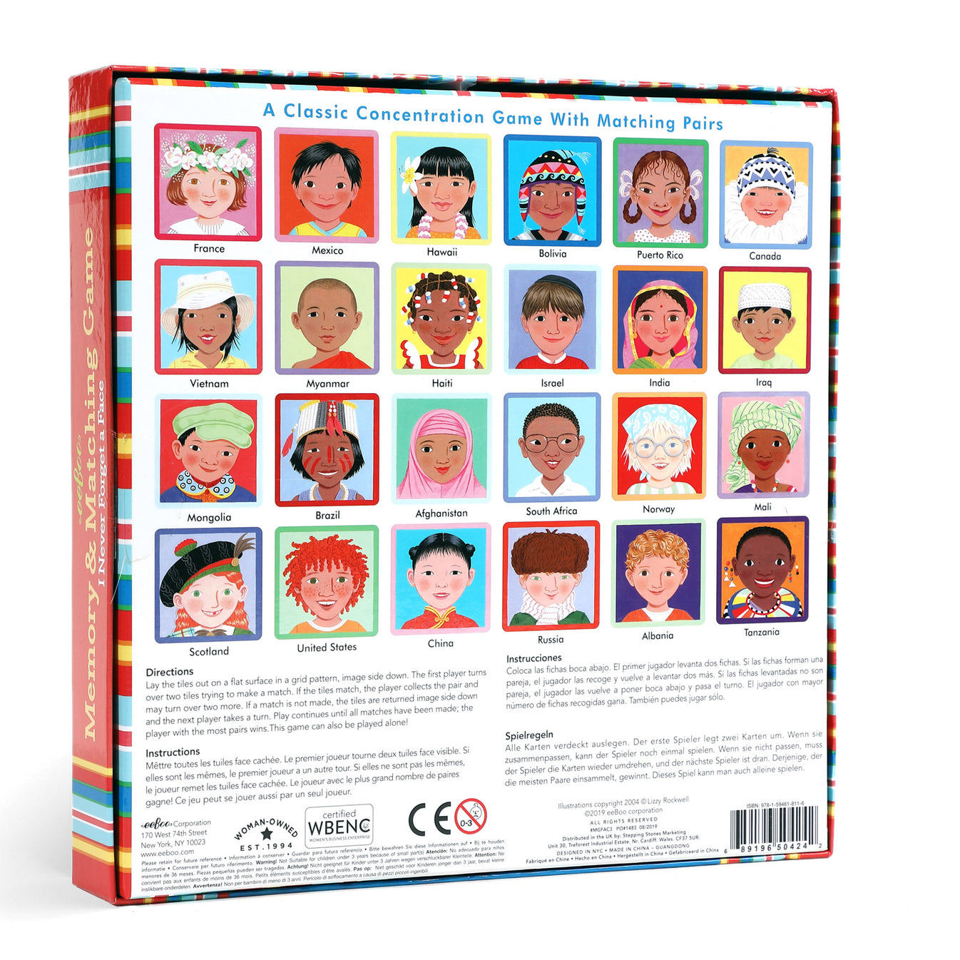 The smiling faces of 24 children from countries all over the world are fun and sometimes challenging to match in this memory game. While developing patience and memory skills, children are introduced to the inspiring diversity of 24 warm and accessible children from cultures around the world, opening doors to empathy and discovery. The back cover identifies each child’s home country. An eeBoo favorite!