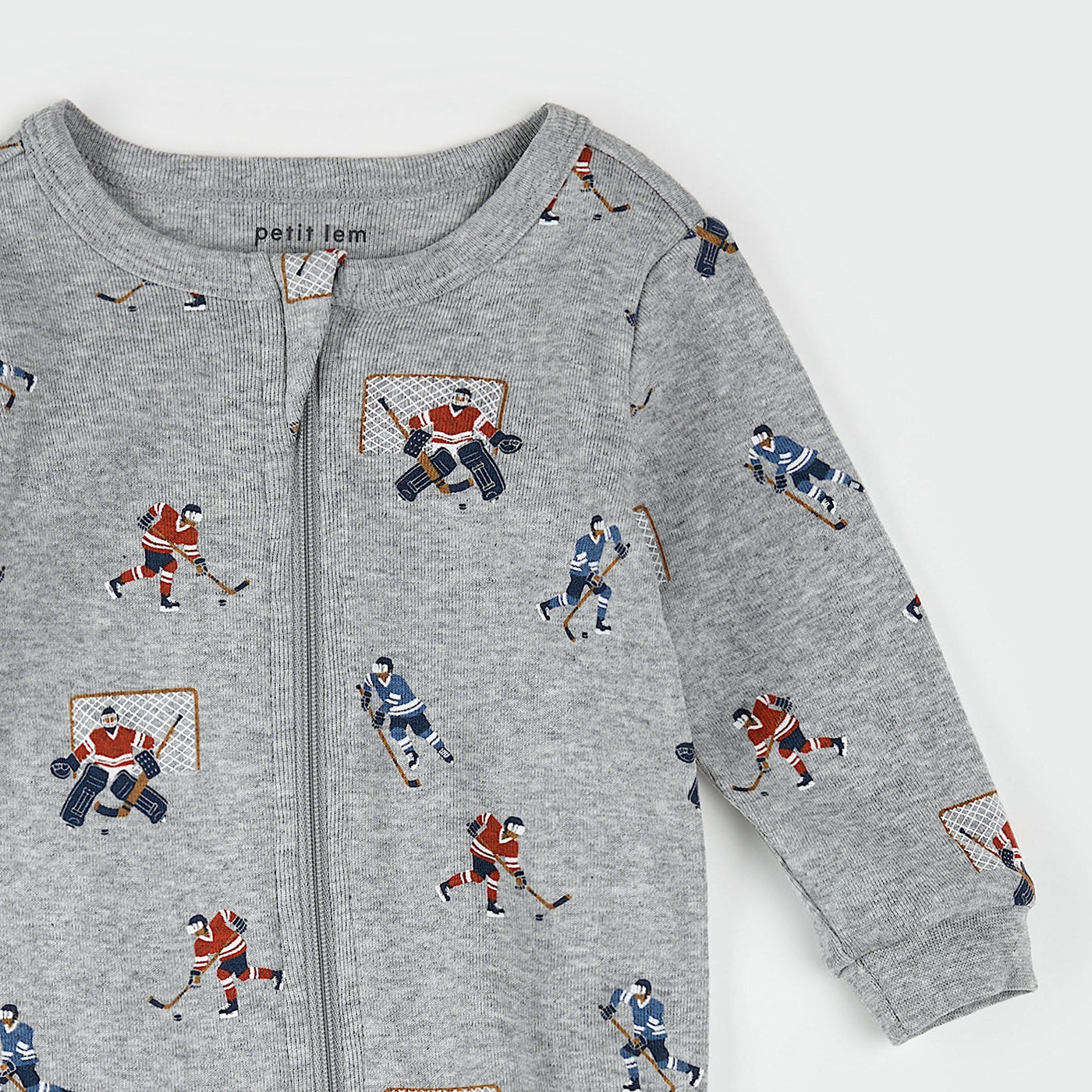 Let them dream of breakaways and slap shots with this Hockey Players print sleeper. The soft, footed one-piece is made from organically grown cotton rib to keep them comfortable from bedtime ‘til morning, while the two-way zip makes changes through the night quick and easy. Matching PJs for older siblings are available to complete the family lineup.