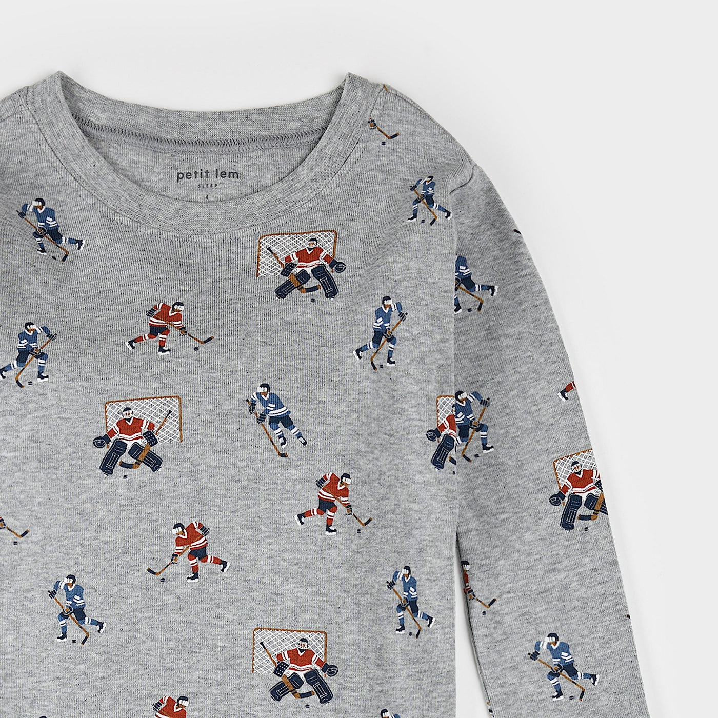 Game on! This hockey-print PJ set is perfect for little sports fans and there’s a matching footed sleeper for the littlest member of the team. The cozy top and pants are made from organically grown cotton rib and feature ribbed cuffs and ankles for a snug fit. With a simple rounded neckline and an elasticated waistband, the PJs encourage independent dressing to make game mornings quicker and easier.