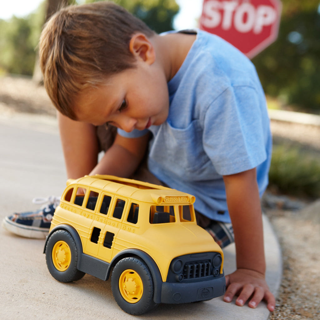School's in session with the planet's favorite new kid in class - the Green Toys School Bus! Made in the USA from 100% recycled plastic that saves energy and reduces greenhouse gas emissions, this sturdy bus is ready to be loaded up for an earth-friendly ride to the classroom, a field trip, or whatever excursion little scholars see fit. The Green Toys School Bus goes to the head of the class for safety and eco-design, with no metal axles or external coatings.