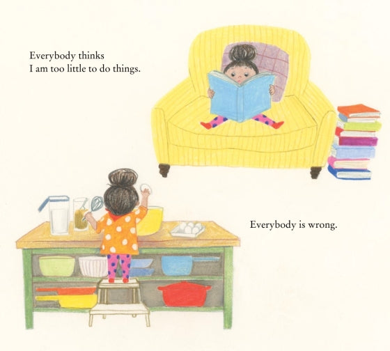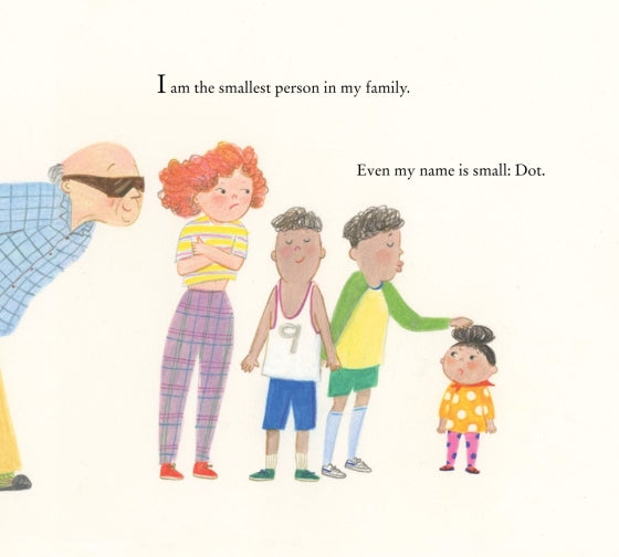 Dot is the smallest person in her family and at school; even her name is small! People often mistake her for being younger than she is, but not when she tells them the square root of sixty-four is eight, nor when she orders from the grown-up menu at restaurants or checks out the hard books at the library. She may be small, but she's not little.