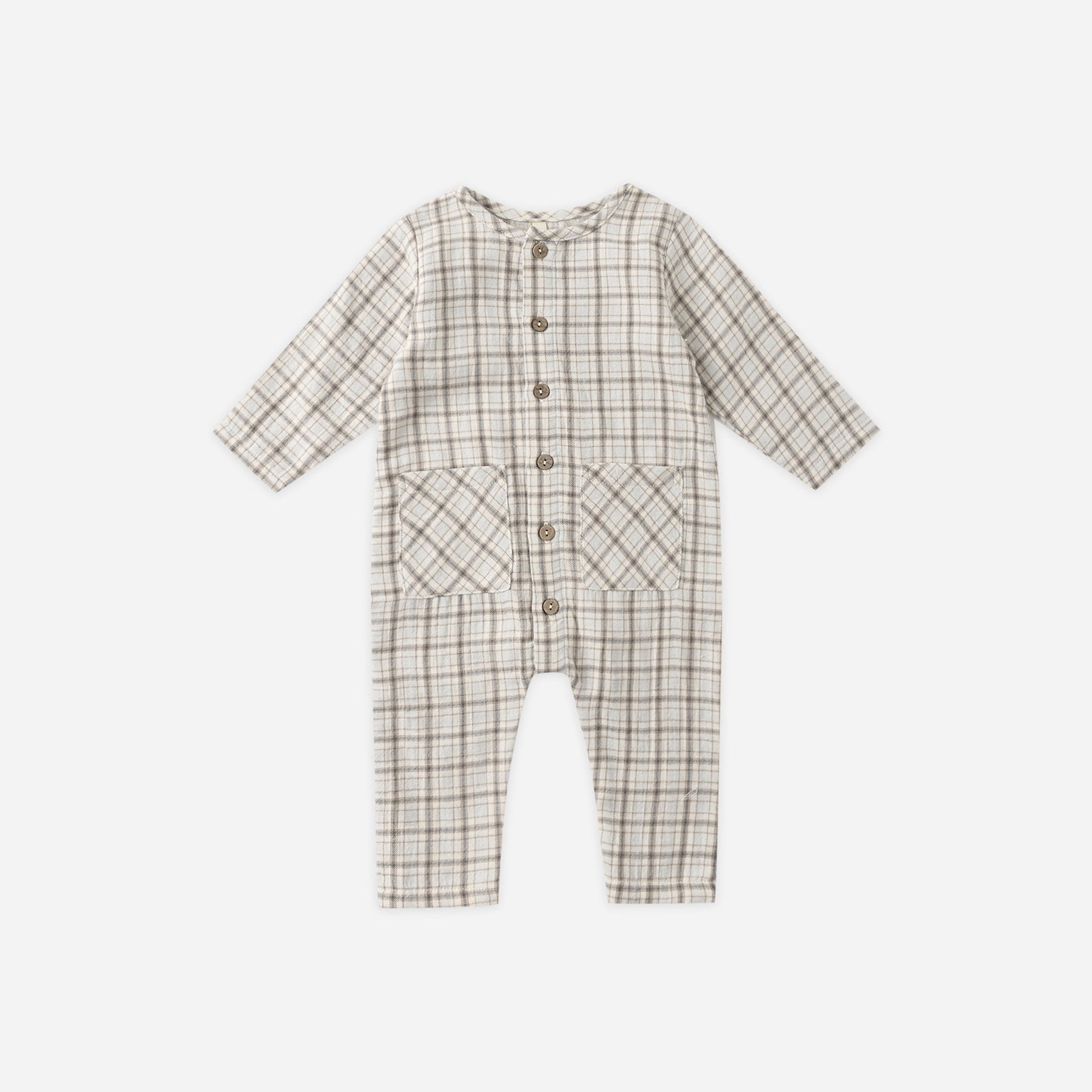 Made from soft organic cotton gauze, this darling jumpsuit features square patch pockets on the front and buttons down the center for easy changing - an everyday staple with timeless charm.