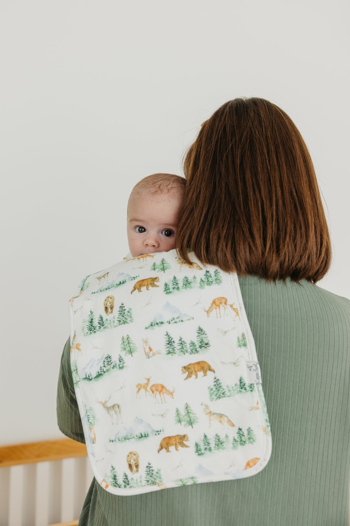 Copper Pearl's premium burp cloths are created with 100% ultra-soft cotton layers on the front (patterned) and back. You can feel confident that baby will feel cozy against your shoulder while burping. A middle fleece layer provides superior absorbency, stopping drool and spit up in their tracks. The dreaded leakage onto parent clothing is a problem of the past! Copper Pearl's burp cloths come in a generous 21x10 inch size, providing greater shoulder coverage (and less outfit changes) for Mom and Dad.