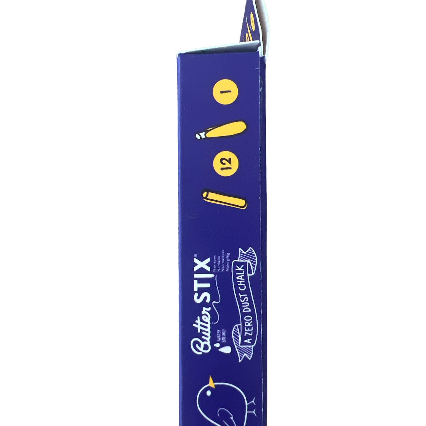 This box of 12 ButterStix comes in assorted colors paired with one ButterStix holder. ButterStix holder color will vary. Please always test the erasability of ButterStix when applying to any non-Jaq Jaq Bird surface.