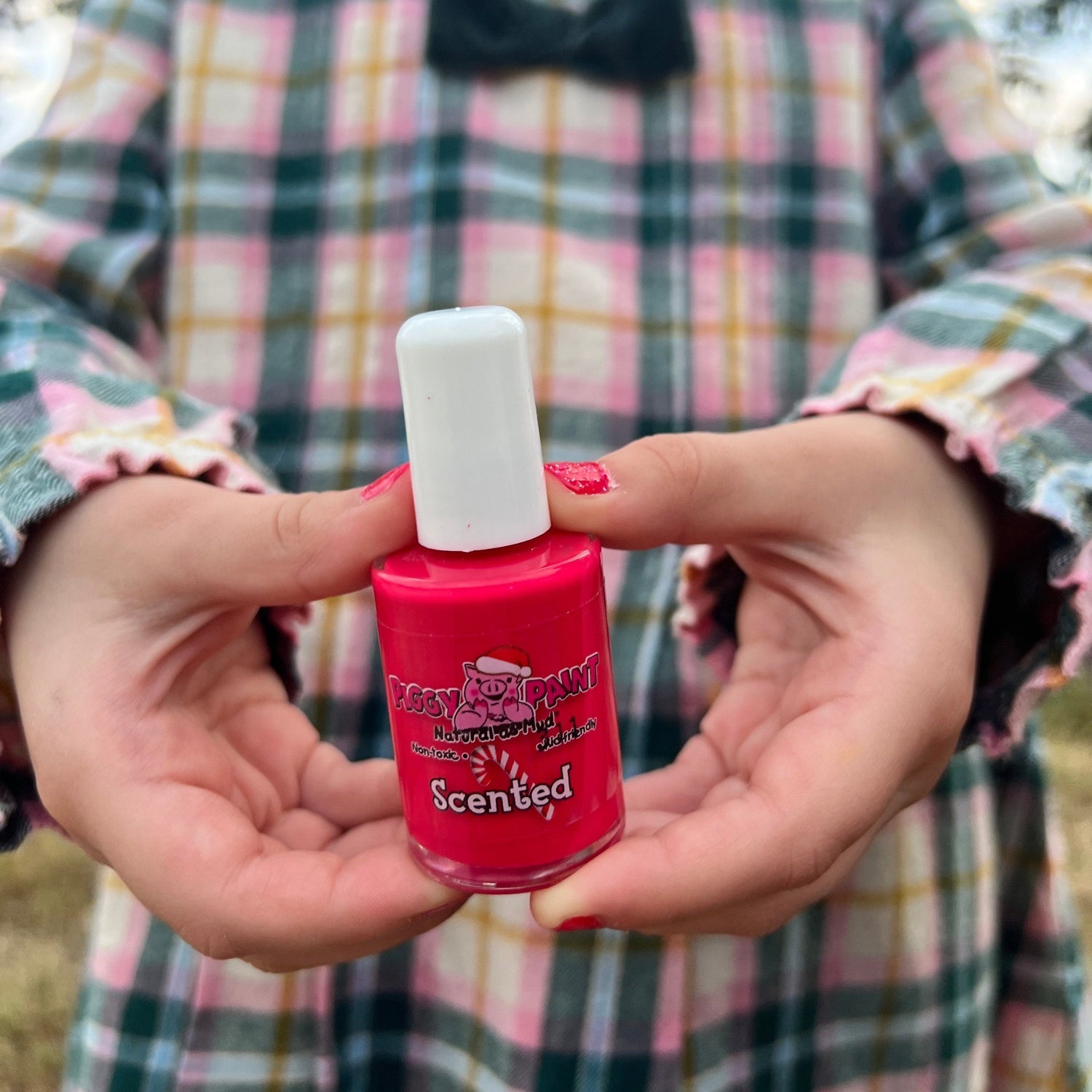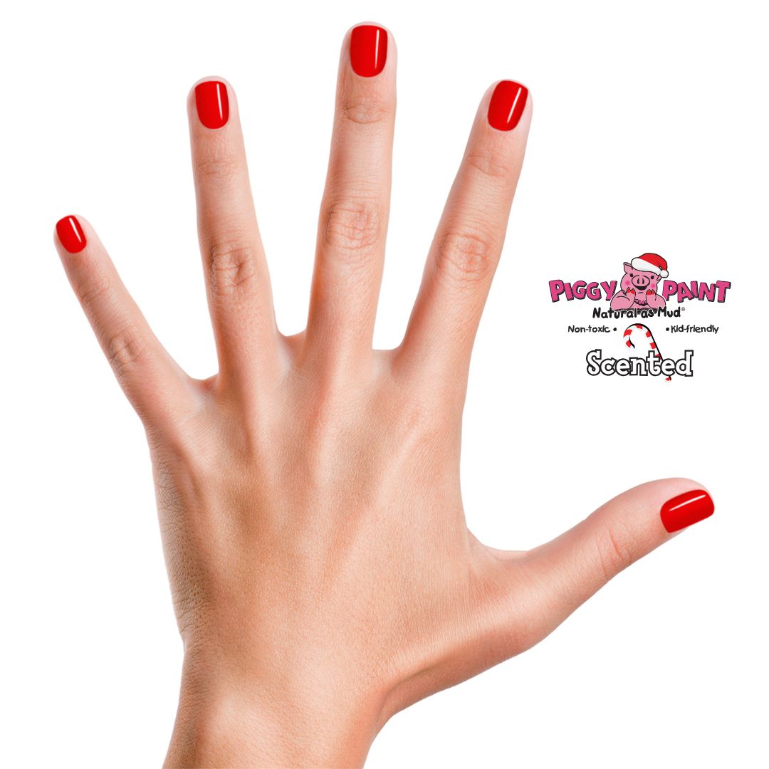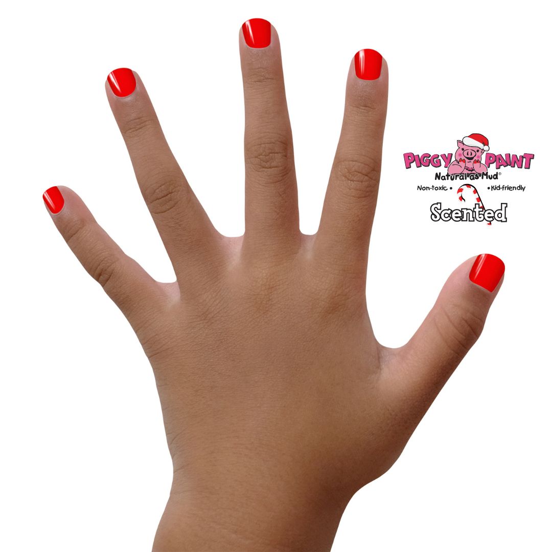 Fun, festive red nail polish that smells like a sweet peppermint treat! This peppermint-scented, jolly red shade is Non-toxic, Kid-friendly, & OH SO FUN!