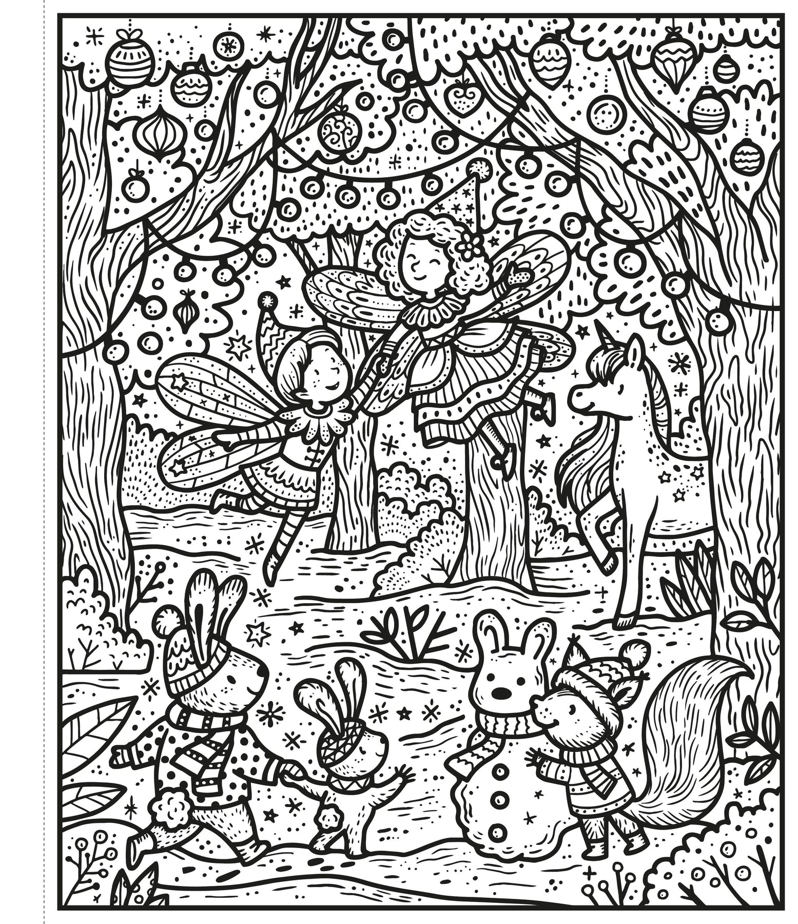 Filled with wintry whimsy, from ice-skating unicorns to snow castles, northern lights and other fantastical delights. Use the brush provided to sweep water over the designs and festive colours magically appear! A mess-free way to keep children busy in the holidays. Simply tuck the waterproof back flap under each page as it's painted, to stop water from seeping through to the rest of the book.