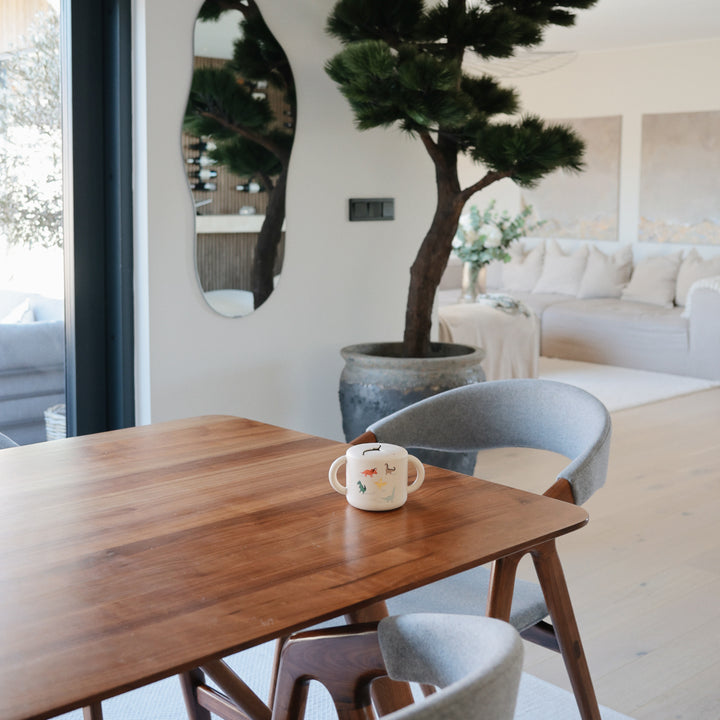 Designed with two small handles for an easy grip for little hands, the Mushie & Co silicone snack cup is spill-proof for any baby to take on the go. The soft opening ensures baby's hands can slide easily in and out, while keeping food securely inside. This snack cup is a must-have for toddlers on the move.