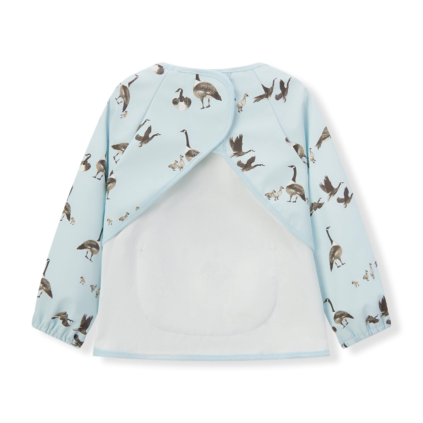 Keep mealtime messes at bay with Milkbarn's Long Sleeve Pocket Bib in the Goose print. Designed for practicality and style, this bib features long sleeves for full coverage and a convenient pocket to catch crumbs and spills. Crafted from soft and durable materials, it's easy to clean and comfortable for your little one to wear.