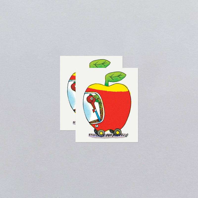 Oh look, it's Lowly Worm, riding through Busy Town in his apple car! You will likely recognize Lowly from storybooks by one of the world’s best-loved children’s authors, Richard Scarry. Share this Tattoo Pair with a friend who is the Huckle Cat to your Lowly Worm!